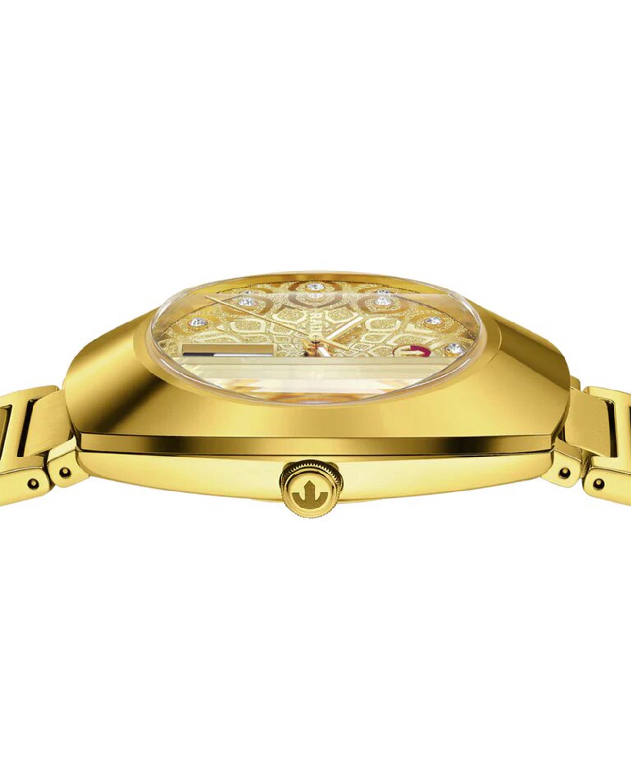 Мужские механические часы-скелетоны с автоподзаводом Rado DiaStar The Original Automatic R12161633. Корпус часов выполнен из нержавеющей стали с PVD-покрытиемPVDУльтратонкое покрытие наносится в технике вакуумного напыления, сочетает в себе нитрид титана особой прочности со слоем золота или оксида хрома. Несёт в себе декоративную или защитную функцию.. Стрелки с люминесцентным покрытиемЛюминесцентное покрытиеПозволяет считывать показания времени в темноте. Производители наносят на стрелки, часовые индексы, безель или поверхность циферблата светонакопительный состав, дающий холодное свечение. Super-LumiNova. Класс водозащиты: 100 метров, позволит плавать, нырять и заниматься другими водными видами спорта. Стальной браслет с PVD-покрытиемPVDУльтратонкое покрытие наносится в технике вакуумного напыления, сочетает в себе нитрид титана особой прочности со слоем золота или оксида хрома. Несёт в себе декоративную или защитную функцию. на застёжке-бабочке с кнопкамиЗастёжка "бабочка"Такой вид застёжки дополняется предохранителями, помогающими избежать случайного раскрытия браслета. Обладают изящным исполнением. .