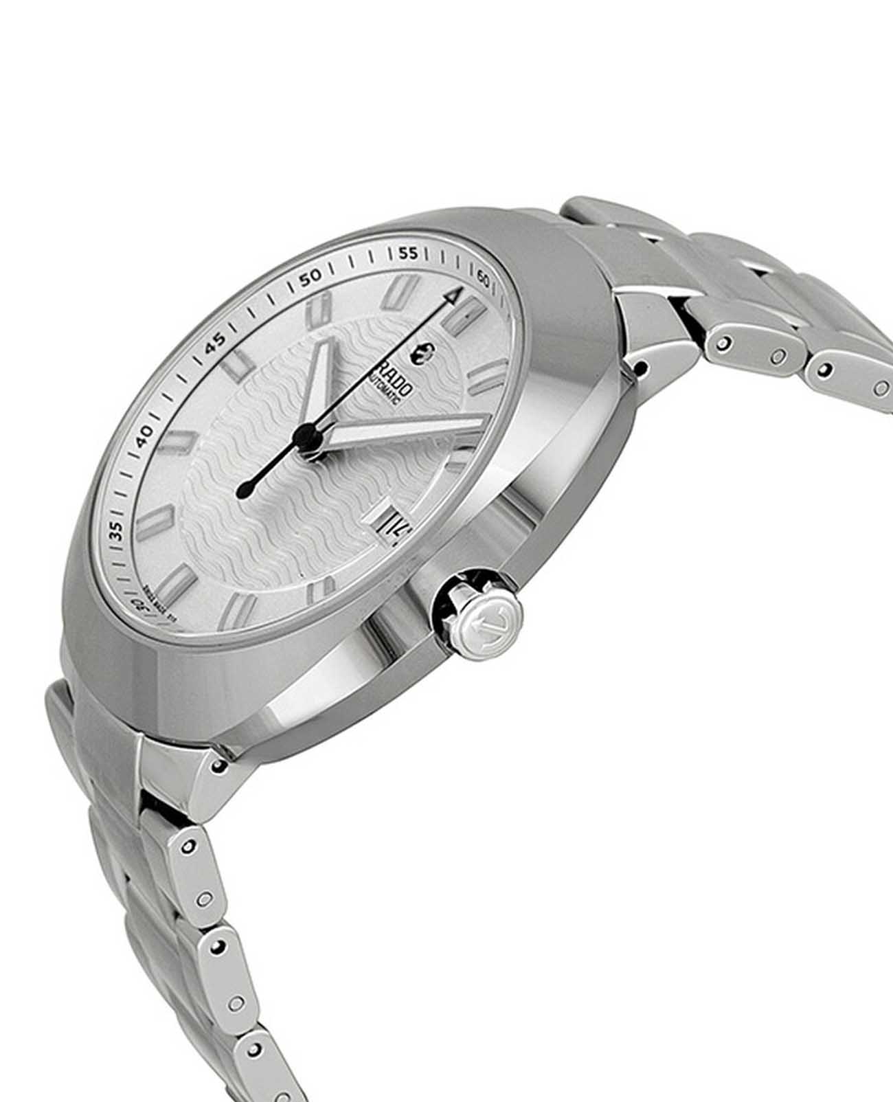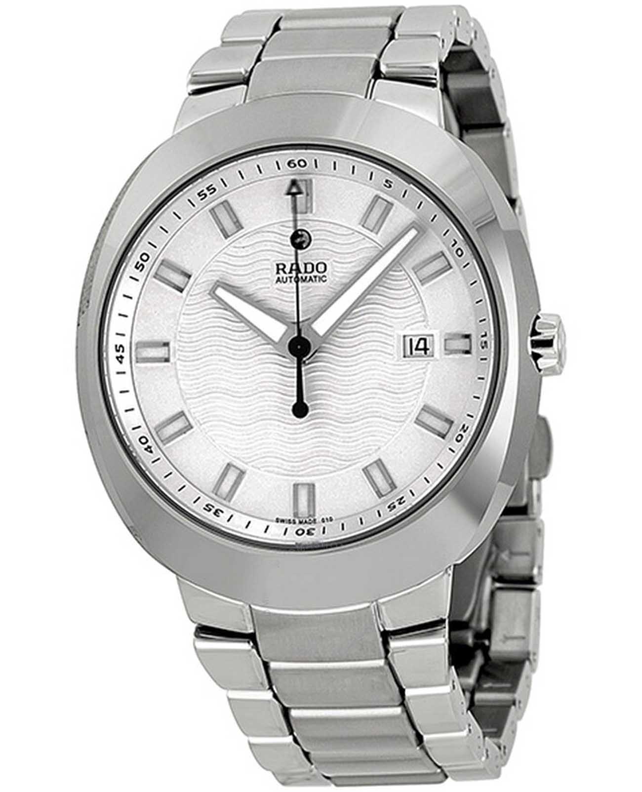 Мужские механические швейцарские часы с автоподзаводом Rado D-Star R15938103. Сапфировое стеклоСапфировое стеклоПрочный и надёжный материал из кристалла сапфира синтетического происхождения, характеризующийся особой твёрдостью и устойчивостью к царапинам и повреждениям. устойчивое к мелким механическим повреждениям. Корпус часов изготовлен из нержавеющей стали. БезельБезельВнешний ободок, закрепляющий стекло. В спортивных часах так называется поворотное кольцо с делениями на циферблате, выполняет роль таймера – замеряет отрезки времени на шкале. Неподвижный безель – элемент декора. Однонаправленно вращающийся безель на дайверских часах позволяет фиксировать моменты погружения и выныривания на поверхность. из высокотехнологичной керамикиВысокотехнологичная керамикаИнновационный запатентованный Rado материал с гладкой или матовой поверхностью. Керамика за счёт кристаллической структуры обладает повышенной устойчивостью от возникновения царапин. Материал способен принимать температуру тела человека, обеспечивая невероятный комфорт при ношении.. Окошко даты находится в положении 3 часа. Стрелки с люминесцентным покрытиемЛюминесцентное покрытиеПозволяет считывать показания времени в темноте. Производители наносят на стрелки, часовые индексы, безель или поверхность циферблата светонакопительный состав, дающий холодное свечение.. Класс водозащиты: 100 метров, позволит плавать, нырять и заниматься другими водными видами спорта. Браслет из стали и  высокотехнологичной керамикиВысокотехнологичная керамикаИнновационный запатентованный Rado материал с гладкой или матовой поверхностью. Керамика за счёт кристаллической структуры обладает повышенной устойчивостью от возникновения царапин. Материал способен принимать температуру тела человека, обеспечивая невероятный комфорт при ношении. на раскладной застёжкеРаскладная застёжкаТакой тип застёжки используется только на браслетах из металла. Она никогда не раскрывается полностью, происходит разделение на 2 и более частей. Раскладывающая застёжка снизит вероятность потери часов к минимуму..
