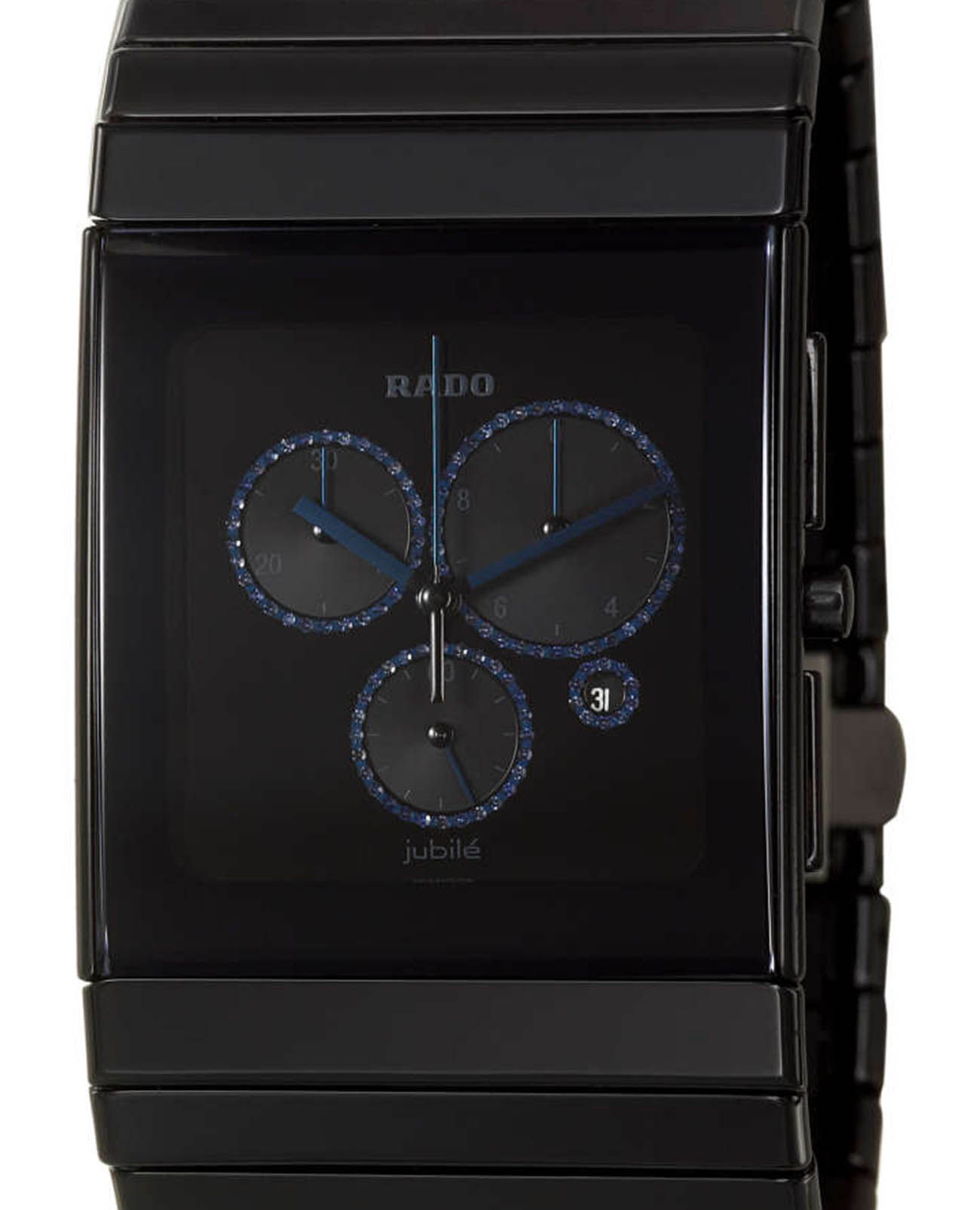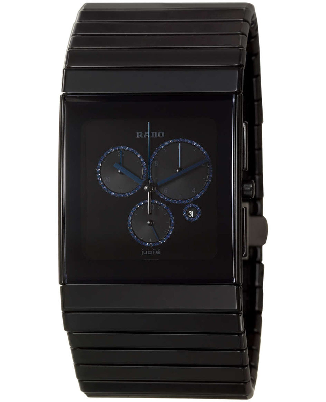 Мужские швейцарские наручные часы- хронографХронографФункция позволяет измерять отрезки времени с особой точностью: часы, минуты, секунды. Верным признаком хронографа является наличие на циферблате 3 дополнительных окошек-счётчиков. Rado Ceramica R21714752, кварцевый механизм с высокой точностью. Сапфировое стеклоСапфировое стеклоПрочный и надёжный материал из кристалла сапфира синтетического происхождения, характеризующийся особой твёрдостью и устойчивостью к царапинам и повреждениям. устойчивое к появлению царапин, обладающее высокой прозрачностью. Класс водозащиты: 30 метров, позволит защитить корпус от случайных брызг или капель дождя. Браслет из высокотехнологичной плазменной керамикиВысокотехнологичная плазменная керамикаИнновационный материал, технология запатентована. Выплавление керамики осуществляется в печи при 20 000 °C, белоснежный материал под воздействием ультравысокой температуры приобретает уникальный блеск, присущий металлам. на раскладной застёжкеРаскладная застёжкаТакой тип застёжки используется только на браслетах из металла. Она никогда не раскрывается полностью, происходит разделение на 2 и более частей. Раскладывающая застёжка снизит вероятность потери часов к минимуму..