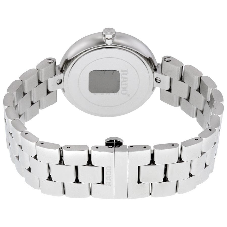 Швейцарские женские часы Rado Coupole R22852703, кварцевый механизм с высокой точностью. Сапфировое стеклоСапфировое стеклоПрочный и надёжный материал из кристалла сапфира синтетического происхождения, характеризующийся особой твёрдостью и устойчивостью к царапинам и повреждениям. устойчивое к появлению царапин, обладающее высокой прозрачностью. Корпус часов изготовлен из нержавеющей стали. Окошко даты находится в положении 3 часа. Класс водозащиты: 50 метров, позволит защитить корпус от случайных брызг или капель дождя. Стальной браслет на застёжке-бабочке с кнопкамиЗастёжка "бабочка"Такой вид застёжки дополняется предохранителями, помогающими избежать случайного раскрытия браслета. Обладают изящным исполнением. .