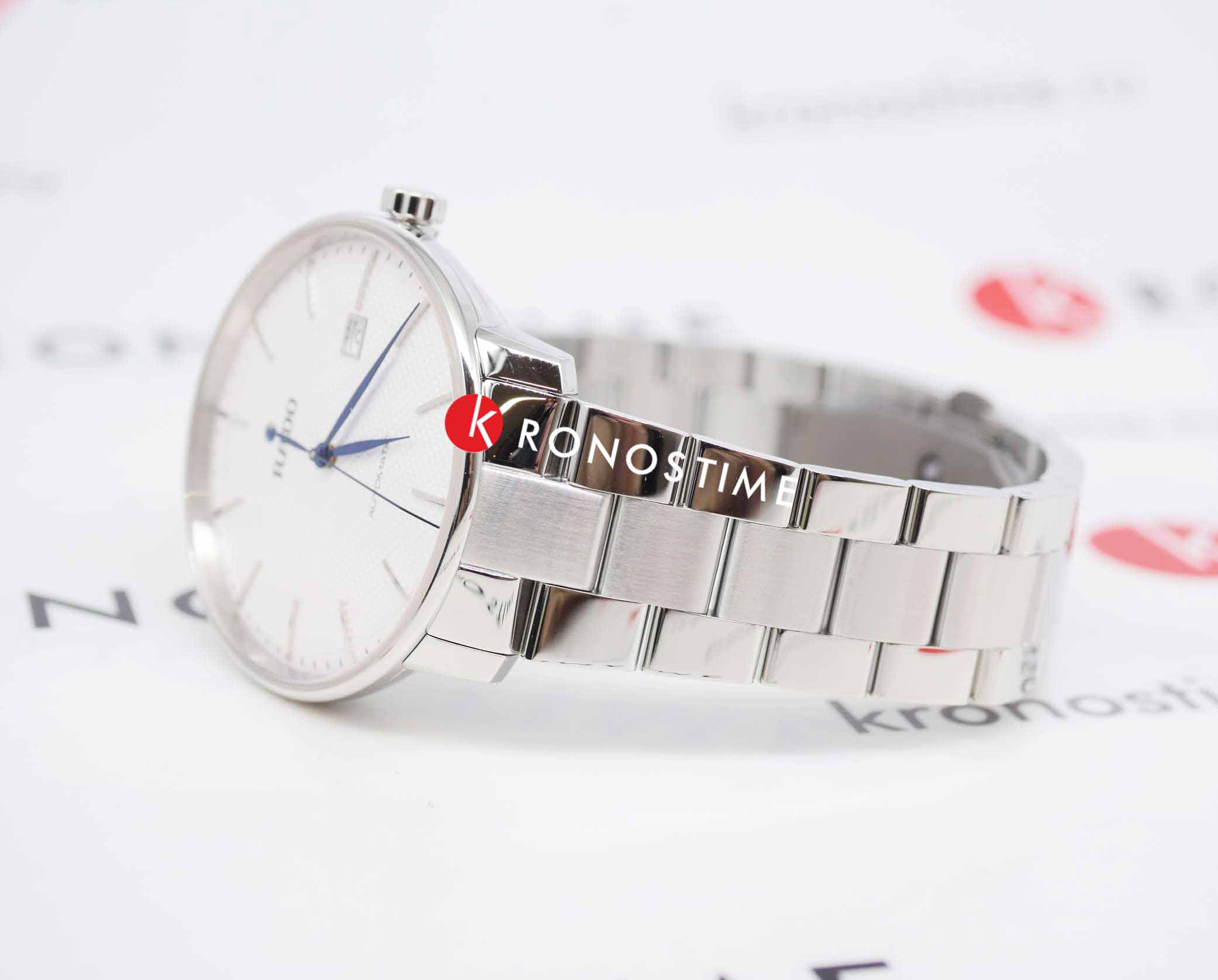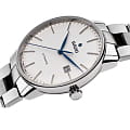 Лаконичный белый циферблат имеет оригинальный узор, такое исполнение привнесёт в сдержанный стиль строгого пиджака долю эксклюзивности. В качестве цветового акцента используются яркие синие стрелки. Наручные часы с автоподзаводом имеют швейцарский калибр ETA C07.611, сохраняющий запас хода на 80 часов. Стекло из сапфира с покрытием "антиблик". Скелетонизированная задняя крышка. Надёжный стальной браслет. Диаметр корпуса: 41 мм.