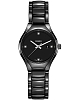 Компактная модель отличается изящным силуэтом и удачно гармонирует с любым стилем одежды, шика добавляют 4 бриллианта в 0,032 карат. Контрастные стрелки и метки серебряного цвета обеспечивают отличную читаемость чёрного циферблата. Наручные часы сделаны из высокотехнологичной керамикиВысокотехнологичная керамикаИнновационный запатентованный Rado материал с гладкой или матовой поверхностью. Керамика за счёт кристаллической структуры обладает повышенной устойчивостью от возникновения царапин. Материал способен принимать температуру тела человека, обеспечивая невероятный комфорт при ношении., материал долговечен, лёгок и устойчив к образованию царапин. Швейцарский кварцевый калибр ETA 956.112. Сапфировое стекло. Люминесцентная подсветкаЛюминесцентное покрытиеПозволяет считывать показания времени в темноте. Производители наносят на стрелки, часовые индексы, безель или поверхность циферблата светонакопительный состав, дающий холодное свечение.. Водонепроницаемость 5 бар. . Окошко календаря. Диаметр корпуса: 30 мм.