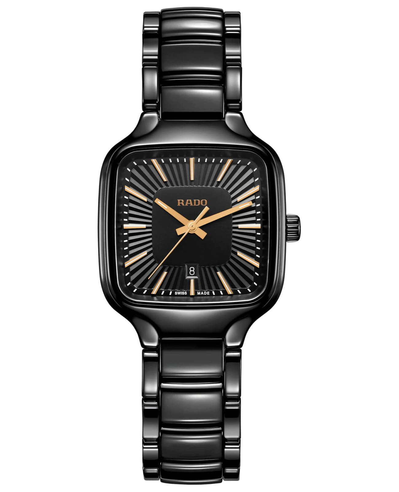 Женские швейцарские механические часы Rado True Square R27080172 являются воплощением изысканности и инновационных решений. Эти часы отличаются уникальным дизайном с квадратной формой корпуса Rado Square, который выполнен в виде цельной монолитной конструкции из высокотехнологичной плазменной керамикиВысокотехнологичная плазменная керамикаИнновационный материал, технология запатентована. Выплавление керамики осуществляется в печи при 20 000 °C, белоснежный материал под воздействием ультравысокой температуры приобретает уникальный блеск, присущий металлам. — материала, известного своей исключительной прочностью и устойчивостью к внешним воздействиям.