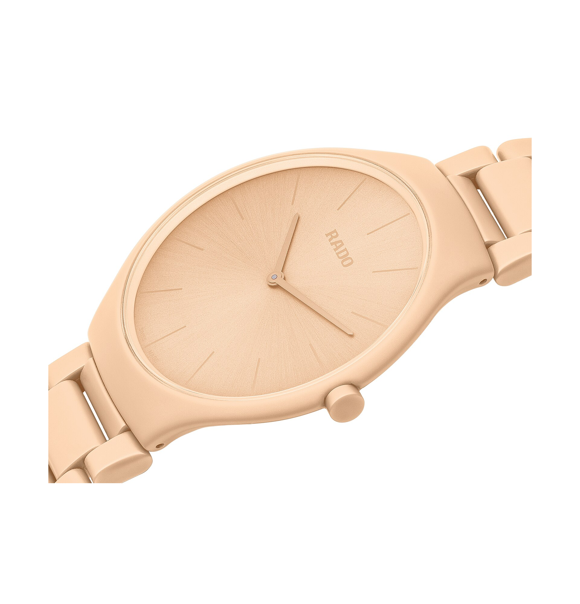 Швейцарские часы из лимитированной серии 999 экземпляров Rado True Thinline Le Corbusier R27097672 , кварцевый механизм с высокой точностью. Сапфировое стекло устойчивое к появлению царапин, обладающее высокой прозрачностью. Класс водозащиты: 30 метров, позволит защитить корпус от случайных брызг или капель дождя. Корпус часов изготовлен из керамики, золотистого цвета.