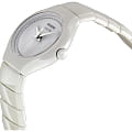 Глянцевый корпус представлен в оригинальном дизайне, его линии плавно перетекают в браслет. Наручные часы выполнены из высокотехнологичной плазменной керамикиВысокотехнологичная плазменная керамикаИнновационный материал, технология запатентована. Выплавление керамики осуществляется в печи при 20 000 °C, белоснежный материал под воздействием ультравысокой температуры приобретает уникальный блеск, присущий металлам., материал не вызывает аллергии и обеспечивает невероятный комфорт при ношении. Швейцарский кварцевый калибр ETA 980.106. Циферблат со стальными стрелками, украшенный 68 бриллиантами (0,04 карата) по внешнему краю. Сапфировое стеклоСапфировое стеклоПрочный и надёжный материал из кристалла сапфира синтетического происхождения, характеризующийся особой твёрдостью и устойчивостью к царапинам и повреждениям. устойчиво к образованию царапин. Водостойкость 3 бар. Застёжка «бабочка» с кнопкамиЗастёжка "бабочка"Такой вид застёжки дополняется предохранителями, помогающими избежать случайного раскрытия браслета. Обладают изящным исполнением. сводит к минимуму вероятность потери модели. Диаметр корпуса: 27 мм.