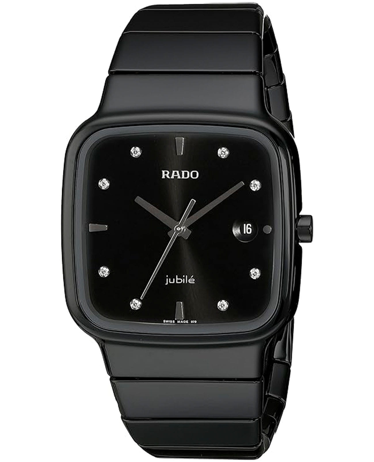 Швейцарские часы Rado R5.5 R28910702. Сапфировое стеклоСапфировое стеклоПрочный и надёжный материал из кристалла сапфира синтетического происхождения, характеризующийся особой твёрдостью и устойчивостью к царапинам и повреждениям. устойчивое к мелким механическим повреждениям. Корпус часов изготовлен из высокотехнологичной плазменной керамикиВысокотехнологичная плазменная керамикаИнновационный материал, технология запатентована. Выплавление керамики осуществляется в печи при 20 000 °C, белоснежный материал под воздействием ультравысокой температуры приобретает уникальный блеск, присущий металлам.. Стрелки и метки с люминесцентным покрытиемЛюминесцентное покрытиеПозволяет считывать показания времени в темноте. Производители наносят на стрелки, часовые индексы, безель или поверхность циферблата светонакопительный состав, дающий холодное свечение.. Класс водозащиты: 30 метров, позволит защитить корпус от случайных брызг или капель дождя. Браслет из высокотехнологичной плазменной керамикиВысокотехнологичная плазменная керамикаИнновационный материал, технология запатентована. Выплавление керамики осуществляется в печи при 20 000 °C, белоснежный материал под воздействием ультравысокой температуры приобретает уникальный блеск, присущий металлам. на раскладной застёжкеРаскладная застёжкаТакой тип застёжки используется только на браслетах из металла. Она никогда не раскрывается полностью, происходит разделение на 2 и более частей. Раскладывающая застёжка снизит вероятность потери часов к минимуму.. Циферблат декорирован 8 бриллиантами. Отображение даты в положении «3 часа».