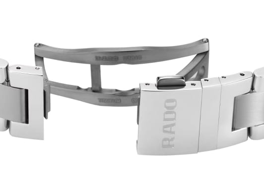 На задней крышке корпуса нанесена металлизированная надпись LIMITED EDITION, ONE OF 823 – ссылка на количество моделей из этого ограниченного выпуска, отсылающая к дню рождения звезды тенниса 23 августа. БезельБезельВнешний ободок, закрепляющий стекло. В спортивных часах так называется поворотное кольцо с делениями на циферблате, выполняет роль таймера – замеряет отрезки времени на шкале. Неподвижный безель – элемент декора. Однонаправленно вращающийся безель на дайверских часах позволяет фиксировать моменты погружения и выныривания на поверхность. изготовлен из высокотехнологичной керамикиВысокотехнологичная керамикаИнновационный запатентованный Rado материал с гладкой или матовой поверхностью. Керамика за счёт кристаллической структуры обладает повышенной устойчивостью от возникновения царапин. Материал способен принимать температуру тела человека, обеспечивая невероятный комфорт при ношении., устойчивой к возникновению царапин. Аксессуар выполнен в спортивном стиле, но сдержанная цветовая гамма и лаконичный облик позволяет ему удачно гармонировать с деловой одеждой. Сапфировое стекло имеет антибликовую обработку. Завинчивающаяся заводная головка и задняя крышка усиливают водостойкость до 300 метров. Для стрелок используется люминесцентное покрытиеЛюминесцентное покрытиеПозволяет считывать показания времени в темноте. Производители наносят на стрелки, часовые индексы, безель или поверхность циферблата светонакопительный состав, дающий холодное свечение.. Отображение числа на метке 3 часов. Диаметр корпуса: 42 мм. Браслет из нержавеющей стали с раскладывающейся застежкой сводит к минимуму вероятность потери модели. В комплекте идут 2 дополнительных ремешка: из натуральной кожи и текстильный ремешок НАТО.