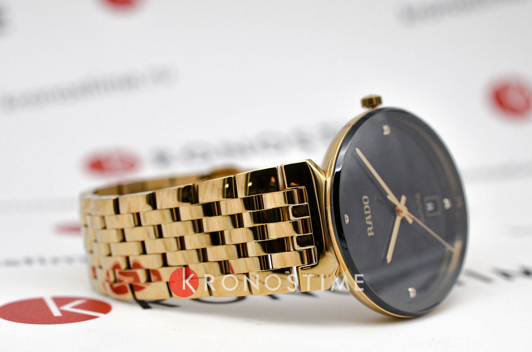 Швейцарские кварцевые часы Rado Florence Classic Diamonds R48914703. Сапфировое стеклоСапфировое стеклоПрочный и надёжный материал из кристалла сапфира синтетического происхождения, характеризующийся особой твёрдостью и устойчивостью к царапинам и повреждениям. устойчивое к мелким механическим повреждениям. Корпус изготовлен из нержавеющей стали с PVD-покрытиемPVDУльтратонкое покрытие наносится в технике вакуумного напыления, сочетает в себе нитрид титана особой прочности со слоем золота или оксида хрома. Несёт в себе декоративную или защитную функцию.. Циферблат украшен бриллиантами. Окошко даты находится в положении 6 часов. Класс водозащиты: 50 метров, позволит защитить корпус от случайных брызг или капель дождя. Браслет из стали с PVD-покрытиемPVDУльтратонкое покрытие наносится в технике вакуумного напыления, сочетает в себе нитрид титана особой прочности со слоем золота или оксида хрома. Несёт в себе декоративную или защитную функцию. на застёжке-бабочкеЗастёжка "бабочка"Такой вид застёжки дополняется предохранителями, помогающими избежать случайного раскрытия браслета. Обладают изящным исполнением. .