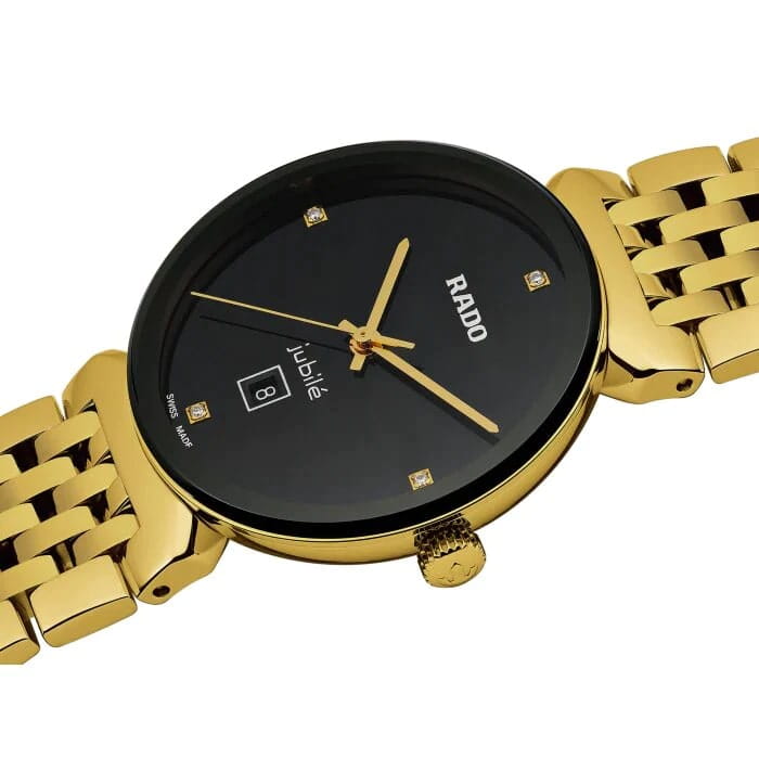Швейцарские часы Rado Florence Classic Diamonds R48915703, кварцевый механизм с высокой точностью. Сапфировое стеклоСапфировое стеклоПрочный и надёжный материал из кристалла сапфира синтетического происхождения, характеризующийся особой твёрдостью и устойчивостью к царапинам и повреждениям. устойчивое к мелким механическим повреждениям. Корпус часов изготовлен из нержавеющей стали с PVD-покрытиемPVDУльтратонкое покрытие наносится в технике вакуумного напыления, сочетает в себе нитрид титана особой прочности со слоем золота или оксида хрома. Несёт в себе декоративную или защитную функцию.. Циферблат украшен бриллиантами. Класс водозащиты: 50 метров, позволит защитить корпус от случайных брызг или капель дождя. Браслет из нержавеющей стали с PVD-покрытиемPVDУльтратонкое покрытие наносится в технике вакуумного напыления, сочетает в себе нитрид титана особой прочности со слоем золота или оксида хрома. Несёт в себе декоративную или защитную функцию. на застёжке-бабочкеЗастёжка "бабочка"Такой вид застёжки дополняется предохранителями, помогающими избежать случайного раскрытия браслета. Обладают изящным исполнением. .