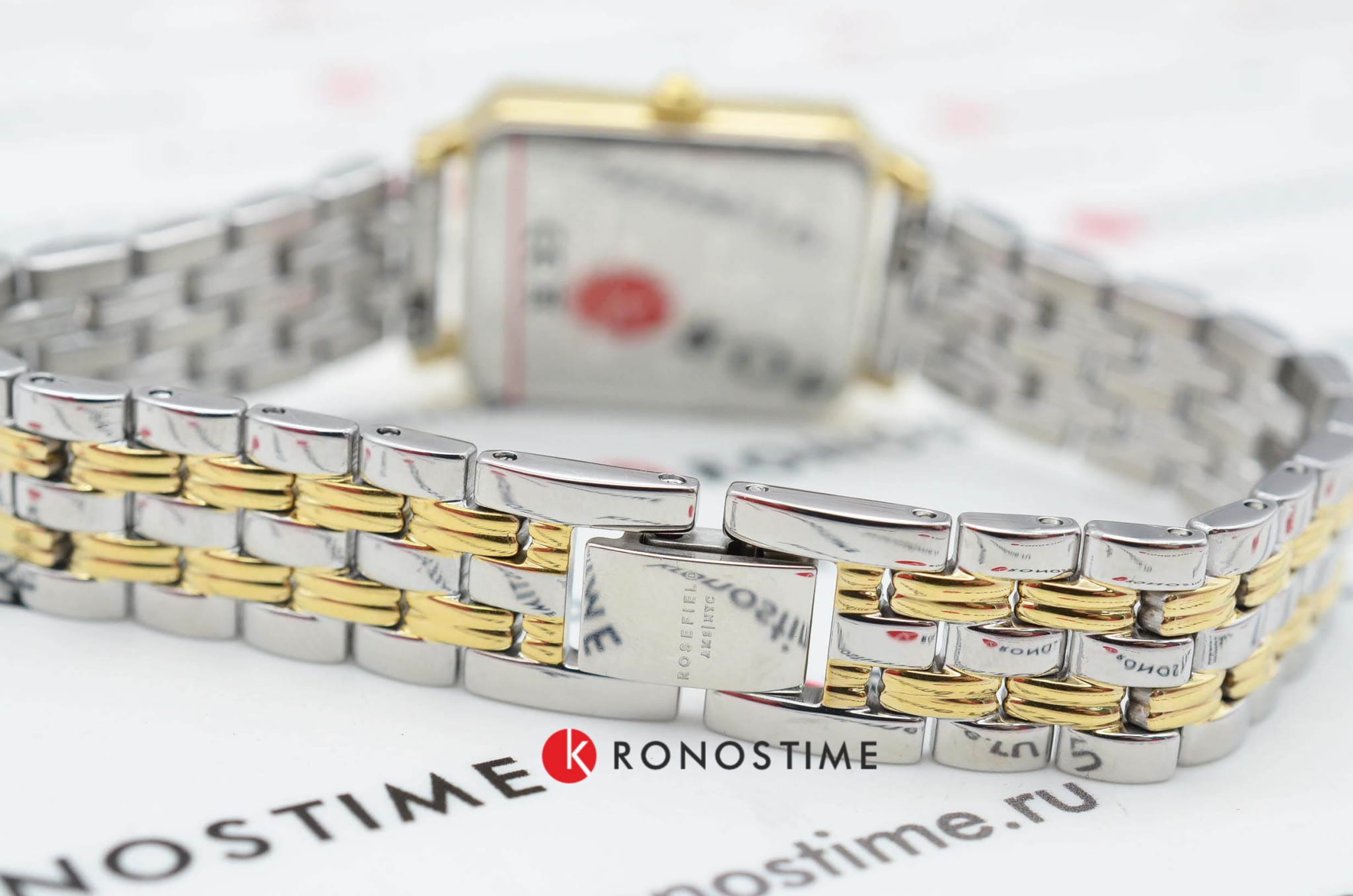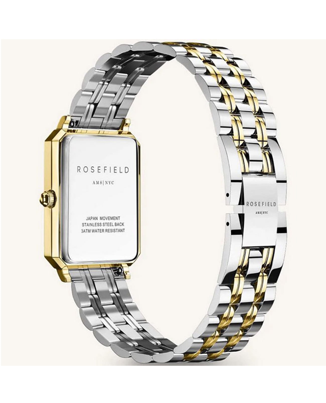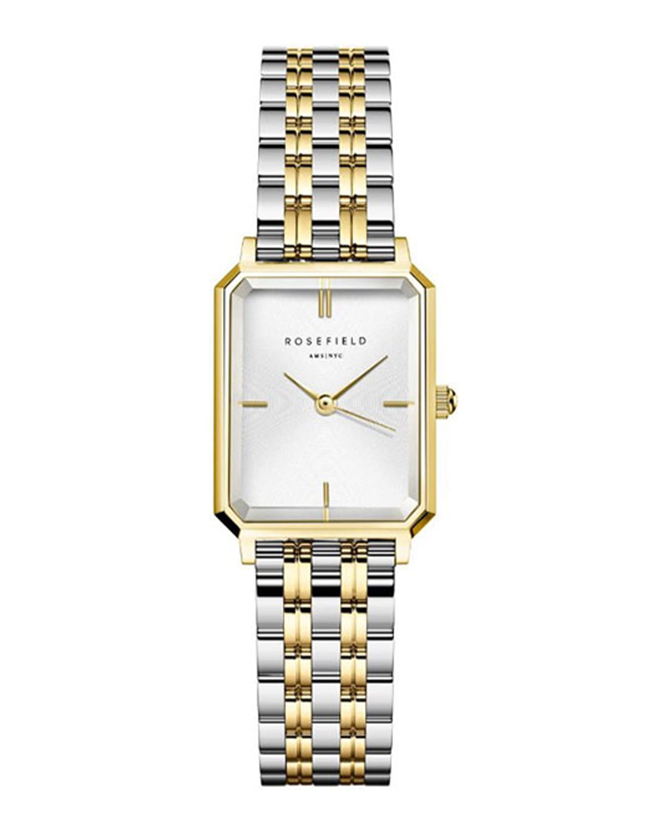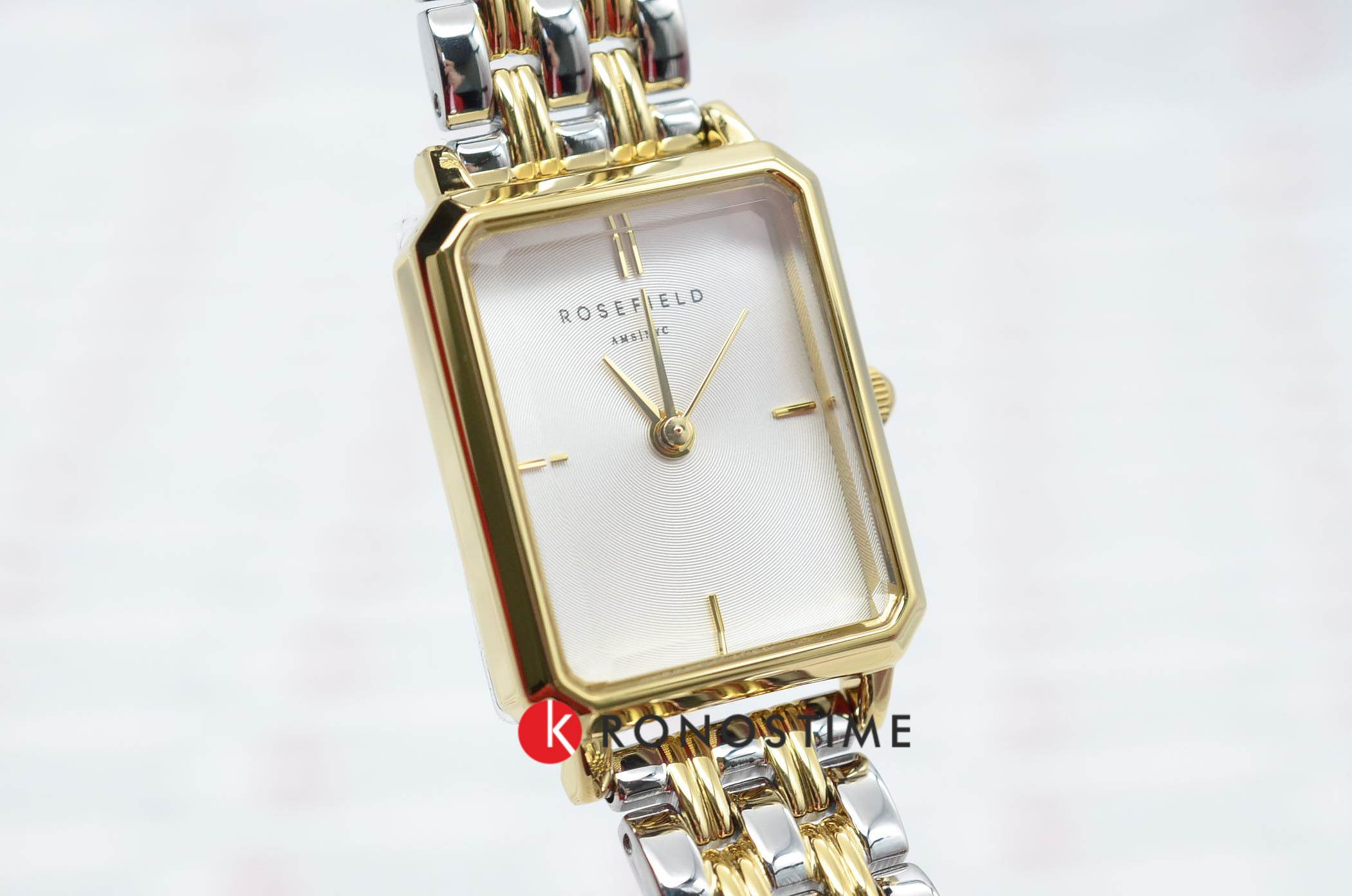 Женские кварцевые часы. Центральные часовая, минутная и секундная стрелки. Серебристый циферблат. Восьмиугольный корпус выполнен из металла с IP покрытием цвета желтого золота. Размер корпуса составляет 19,5 х 24 мм, толщина 7 мм. Стальной браслет с частичным покрытием, браслетная застежка. Прочное минеральное стекло устойчивое к мелким механическим повреждениям. Водостойкость WR 30 (брызги).