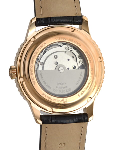 Точность хода обеспечивается надежным механическим механизмом с автоподзаводом Miyota 8215 (Япония). Этот высокоточный механизм гарантирует, что ваши часы всегда будут показывать точное время без необходимости регулярной подзарядки батареи. Заводная система работает от движения руки, что делает эти часы особенно удобными и практичными.