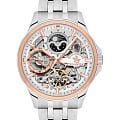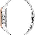 Мужские механические часы с автоподзаводом Santa Barbara Polo & Racquet Club — это стильный и технологичный аксессуар. Корпус диаметром 45 мм выполнен из стали. БезельБезельВнешний ободок, закрепляющий стекло. В спортивных часах так называется поворотное кольцо с делениями на циферблате, выполняет роль таймера – замеряет отрезки времени на шкале. Неподвижный безель – элемент декора. Однонаправленно вращающийся безель на дайверских часах позволяет фиксировать моменты погружения и выныривания на поверхность. с  IP-покрытиемIP-покрытиеМетод ионного напыления. Демонстрирует повышенную устойчивость к истиранию, окислению и химическим веществам. Под воздействием высокого давления и температуры около 1500°C молекулы металла надёжно соединяются с частицами корпуса часов. розового золота, с матовой и полированной отделкой. Циферблат серебристого цвета двухуровневый, частично прозрачный, украшен фирменным логотипом и накладными метками в виде штрихов. Часы оснащены индикацией второго часового пояса. Стрелки заострённые, прямоугольные, в стиле Baton, с люминесцентным покрытиемЛюминесцентное покрытиеПозволяет считывать показания времени в темноте. Производители наносят на стрелки, часовые индексы, безель или поверхность циферблата светонакопительный состав, дающий холодное свечение., обеспечивающим хорошую читаемость в темноте. Метки также имеют люминесцентное покрытие. Циферблат защищён минеральным стекломМинеральное стеклоМинеральное стекло представляет собой искусственно выращенный минерал кварца. Такое стекло отличается особой устойчивостью к повреждениям и царапинам. Уступает по некоторым качествам сапфировому стеклу.. Часы оснащены стальным браслетом с матовой и полированной отделкой и застёжкой «бабочка» с кнопкамиЗастёжка "бабочка"Такой вид застёжки дополняется предохранителями, помогающими избежать случайного раскрытия браслета. Обладают изящным исполнением. . Водонепроницаемость 50 м позволяет использовать часы в повседневных условиях. Идеальный выбор для тех, кто ценит современный дизайн, функциональность и качество.