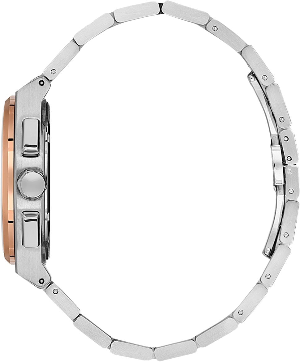 Мужские кварцевые часы Santa Barbara Polo & Racquet Club — это выразительный и функциональный аксессуар. Корпус диаметром 42 мм выполнен из нержавеющей стали 316L. БезельБезельВнешний ободок, закрепляющий стекло. В спортивных часах так называется поворотное кольцо с делениями на циферблате, выполняет роль таймера – замеряет отрезки времени на шкале. Неподвижный безель – элемент декора. Однонаправленно вращающийся безель на дайверских часах позволяет фиксировать моменты погружения и выныривания на поверхность. из стали с IP-покрытиемIP-покрытиеМетод ионного напыления. Демонстрирует повышенную устойчивость к истиранию, окислению и химическим веществам. Под воздействием высокого давления и температуры около 1500°C молекулы металла надёжно соединяются с частицами корпуса часов.. Циферблат чёрного цвета оформлен по технологии Sunray («солнечные лучи»), дополнен накладными метками в виде штрихов и фирменным логотипом. Окошко даты расположено между 4 и 5 часами. Присутствует индикация 24-часового формата времени. Стрелки мечевидной формы и метки с люминесцентным покрытиемЛюминесцентное покрытиеПозволяет считывать показания времени в темноте. Производители наносят на стрелки, часовые индексы, безель или поверхность циферблата светонакопительный состав, дающий холодное свечение., обеспечивающим хорошую читаемость в темноте. Циферблат защищён минеральным стекломМинеральное стеклоМинеральное стекло представляет собой искусственно выращенный минерал кварца. Такое стекло отличается особой устойчивостью к повреждениям и царапинам. Уступает по некоторым качествам сапфировому стеклу.. Часы оснащены стальным браслетом на застёжке «бабочка» с кнопкамиЗастёжка "бабочка"Такой вид застёжки дополняется предохранителями, помогающими избежать случайного раскрытия браслета. Обладают изящным исполнением. . Водонепроницаемость 50 м позволяет использовать часы в повседневных условиях. Идеальный выбор для тех, кто ценит стиль, точность и надёжность.