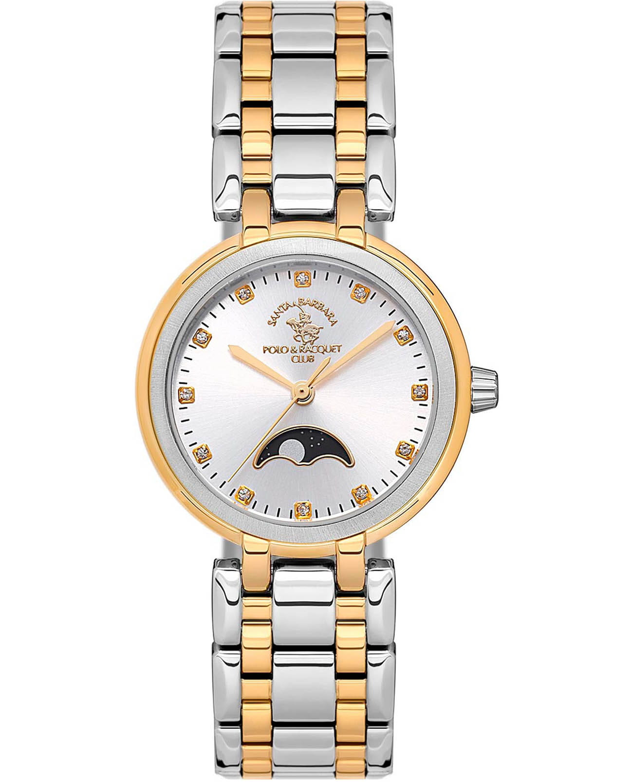 Женские кварцевые часы Santa Barbara Polo & Racquet Club Luxury SB.1.10556-3 — это стильный аксессуар, подчеркивающий индивидуальность. Изысканный корпус диаметром 31 мм выполнен из нержавеющей стали 316L с IP-покрытиемIP-покрытиеМетод ионного напыления. Демонстрирует повышенную устойчивость к истиранию, окислению и химическим веществам. Под воздействием высокого давления и температуры около 1500°C молекулы металла надёжно соединяются с частицами корпуса часов.. Изящный циферблат выполнен по технологии Sunray (солнечные лучи), украшен фирменным логотипом, а также дополнен индикатором день/ночь и накладными метками в виде точек с кристаллами. Защиту циферблата обеспечивает минеральное стеклоМинеральное стеклоМинеральное стекло представляет собой искусственно выращенный минерал кварца. Такое стекло отличается особой устойчивостью к повреждениям и царапинам. Уступает по некоторым качествам сапфировому стеклу., устойчивое к мелким механическим повреждениям. Часы оснащены надежным стальным браслетом с частичным IP-покрытиемIP-покрытиеМетод ионного напыления. Демонстрирует повышенную устойчивость к истиранию, окислению и химическим веществам. Под воздействием высокого давления и температуры около 1500°C молекулы металла надёжно соединяются с частицами корпуса часов. с застёжкой «бабочка»Застёжка "бабочка"Такой вид застёжки дополняется предохранителями, помогающими избежать случайного раскрытия браслета. Обладают изящным исполнением. , обеспечивающим комфортное и безопасное ношение. Водонепроницаемость 50 м позволяет использовать часы в повседневных условиях. Идеальный выбор для тех, кто ценит элегантный дизайн и качество.