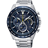 Современные японские наручные мужские часы с хронографом. Круглый корпус и браслет часов выполнены из  высокопрочной стали с антикоррозийными свойствами. Темный фон циферблата. Водонепроницаемость 10 ATM.