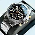 Мужские кварцевые часы Seiko SBTR015 из коллекции Spirit — это сочетание точности, функциональности и современного дизайна. Часы оснащены японским механизмом калибра 8T63 с функцией хронографаХронографФункция позволяет измерять отрезки времени с особой точностью: часы, минуты, секунды. Верным признаком хронографа является наличие на циферблате 3 дополнительных окошек-счётчиков., включающей секундомер с точностью 1/5 секунды и временем измерения до 1 часа, отображаемый центральной стрелкой. Также реализована функция тахиметраТахиметрРазмеченная шкала, располагается на ободке или безеле часов. Тахиметр позволяет рассчитать скорость на определённом участке пути, расстояние измеряется в километрах или милях.. Центральные часовая и минутная стрелки дополнены вынесенной секундной стрелкой на отдельном циферблате, окошко даты расположено между отметками 4 и 5 часов. Циферблат чёрного цвета оформлен штриховыми метками, стрелки и метки покрыты люминесцентным покрытиемЛюминесцентное покрытиеПозволяет считывать показания времени в темноте. Производители наносят на стрелки, часовые индексы, безель или поверхность циферблата светонакопительный состав, дающий холодное свечение. LumiBrite, обеспечивающим хорошую читаемость в темноте. Корпус выполнен из нержавеющей стали и защищён прочным минеральным стеклом Hardlex, устойчивым к царапинам. Браслет из нержавеющей стали фиксируется на раскладной застёжкеРаскладная застёжкаТакой тип застёжки используется только на браслетах из металла. Она никогда не раскрывается полностью, происходит разделение на 2 и более частей. Раскладывающая застёжка снизит вероятность потери часов к минимуму.. Водонепроницаемость 100 м позволяет использовать часы для плавания, ныряния и других водных видов спорта. Модель подходит как для повседневного, так и для делового образа.