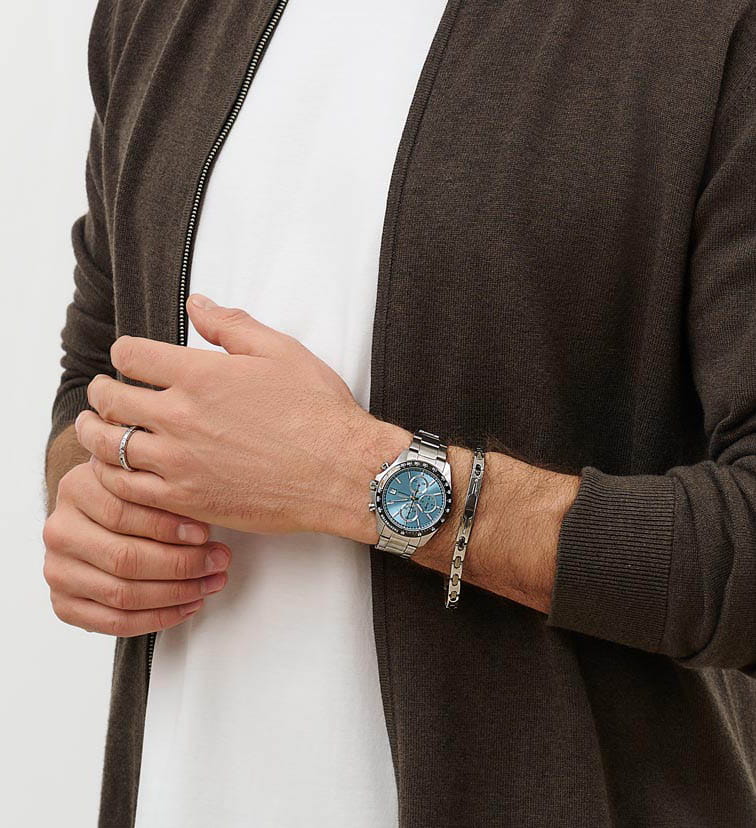 Мужские японские часы-хронографХронографФункция позволяет измерять отрезки времени с особой точностью: часы, минуты, секунды. Верным признаком хронографа является наличие на циферблате 3 дополнительных окошек-счётчиков. с секундомеромСекундомерСекундоме́р — прибор, способный измерять интервалы времени с точностью до долей секунды. Seiko Spirit Chronograph SBTR029 — это великолепное сочетание стиля и функциональности, созданное для современных искателей приключений. Минеральное стеклоМинеральное стеклоМинеральное стекло представляет собой искусственно выращенный минерал кварца. Такое стекло отличается особой устойчивостью к повреждениям и царапинам. Уступает по некоторым качествам сапфировому стеклу. с повышенной прочности Hardlex гарантирует защиту циферблата от царапин, сохраняя их безупречный вид на протяжении долгого времени. Внутри этих часов установлен кварцевый механизм, который обеспечивает высокую точность и надежность, позволяя вам всегда оставаться в курсе времени. Класс водозащиты в 100 метров позволяет вам не только плавать и нырять, но и заниматься разнообразными водными видами спорта, уверенно полагаясь на это надежное устройство, которое выдержит даже самые экстремальные условия. Корпус и браслет часов изготовлены из прочной нержавеющей стали, что укрепляет их долговечность и подчеркивает современный дизайн. Неподвижный безельБезельВнешний ободок, закрепляющий стекло. В спортивных часах так называется поворотное кольцо с делениями на циферблате, выполняет роль таймера – замеряет отрезки времени на шкале. Неподвижный безель – элемент декора. Однонаправленно вращающийся безель на дайверских часах позволяет фиксировать моменты погружения и выныривания на поверхность. с PVD-покрытиемPVDУльтратонкое покрытие наносится в технике вакуумного напыления, сочетает в себе нитрид титана особой прочности со слоем золота или оксида хрома. Несёт в себе декоративную или защитную функцию. черного цвета. Диаметр 39.8 мм, толчина 11.6 мм. Шкала тахиметраТахиметрРазмеченная шкала, располагается на ободке или безеле часов. Тахиметр позволяет рассчитать скорость на определённом участке пути, расстояние измеряется в километрах или милях. по внешнему краю. Удобное окошко даты в позиции 3 часа, делает эти часы еще более практичными, позволяя быстро сверять текущую дату. Кроме того, стрелки и метки часов оснащены люминесцентным покрытиемЛюминесцентное покрытиеПозволяет считывать показания времени в темноте. Производители наносят на стрелки, часовые индексы, безель или поверхность циферблата светонакопительный состав, дающий холодное свечение., что обеспечивает отличную видимость даже в условиях низкой освещенности, поэтому вы всегда сможете узнать время, независимо от окружающей среды. Стальной браслет на раскладной застёжкеРаскладная застёжкаТакой тип застёжки используется только на браслетах из металла. Она никогда не раскрывается полностью, происходит разделение на 2 и более частей. Раскладывающая застёжка снизит вероятность потери часов к минимуму. обеспечивает комфорт и удобство в использовании, добавляя завершающий штрих к этому стильному и высокоэффективному аксессуару.