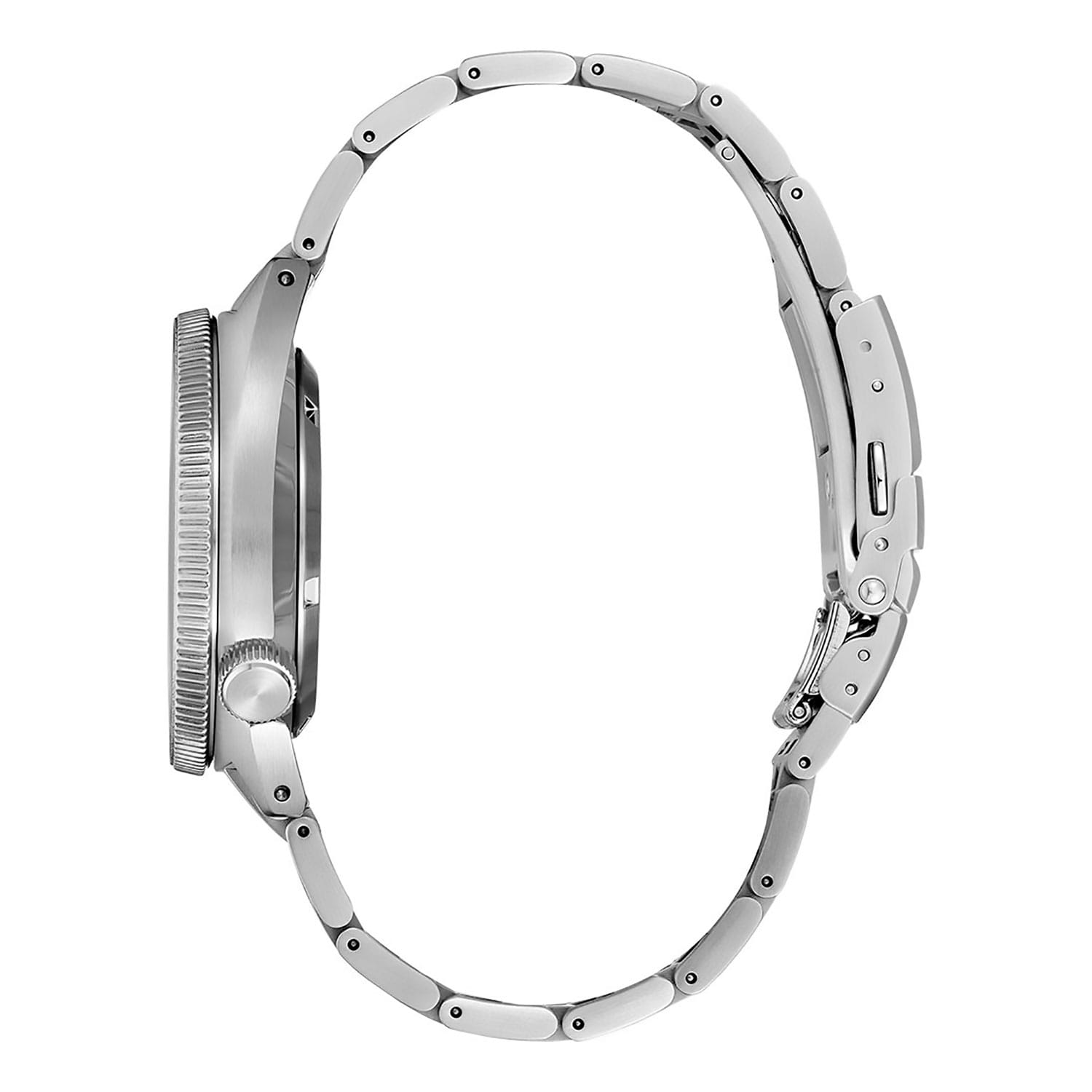 Мужские механические часы с автоподзаводом Seiko — это лимитированная модель, выпущенная тиражом всего 5000 экземпляров. Корпус размером 41×47 мм и толщиной 12 мм выполнен из нержавеющей стали. БезельБезельВнешний ободок, закрепляющий стекло. В спортивных часах так называется поворотное кольцо с делениями на циферблате, выполняет роль таймера – замеряет отрезки времени на шкале. Неподвижный безель – элемент декора. Однонаправленно вращающийся безель на дайверских часах позволяет фиксировать моменты погружения и выныривания на поверхность. из нержавеющей стали с PVD-покрытиемPVDУльтратонкое покрытие наносится в технике вакуумного напыления, сочетает в себе нитрид титана особой прочности со слоем золота или оксида хрома. Несёт в себе декоративную или защитную функцию.. Циферблат оформлен штрихами в качестве индексов. Окошко даты расположено в положении 4 часов. Стрелки и метки с люминесцентным покрытиемЛюминесцентное покрытиеПозволяет считывать показания времени в темноте. Производители наносят на стрелки, часовые индексы, безель или поверхность циферблата светонакопительный состав, дающий холодное свечение. LumiBrite, обеспечивающим хорошую читаемость в темноте. Циферблат защищён сапфировым стекломСапфировое стеклоПрочный и надёжный материал из кристалла сапфира синтетического происхождения, характеризующийся особой твёрдостью и устойчивостью к царапинам и повреждениям. с антибликовым покрытиемАнтибликовое покрытиеСлой оксида металла в 0,13-0,3 микрон, благодаря которому стекло часов не бликует и не отражает свет. Антибликовое покрытие уменьшает отражение света в 10 раз, обеспечивая отличную читаемость показателей циферблата.. Механизм — автоматический калибр 6R35 (24 камня, частота 21 600 полуколебаний в час) с возможностью ручного завода, функцией и запасом хода до 70 часов. Часы обладают защитой от магнитных полей до 4800 А/мУдаропрочный корпусМеханизм заключён в корпус, выполненный из современных материалов, устойчивых к ударам, механическим повреждениям и падению с высоты: инновационный пластик, карбон, нержавеющая сталь, титан.. Часы оснащены стальным браслетом с раскладной застёжкойРаскладная застёжкаТакой тип застёжки используется только на браслетах из металла. Она никогда не раскрывается полностью, происходит разделение на 2 и более частей. Раскладывающая застёжка снизит вероятность потери часов к минимуму.. Водонепроницаемость 200 м позволяет использовать часы для плавания и дайвинга. Идеальный выбор для тех, кто ценит точность, надёжность и ограниченный выпуск.