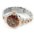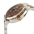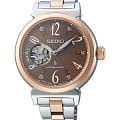 Женские механические часы с автоподзаводом Seiko — это элегантный аксессуар. Корпус диаметром 34,6 мм и толщиной 11 мм выполнен из нержавеющей стали. БезельБезельВнешний ободок, закрепляющий стекло. В спортивных часах так называется поворотное кольцо с делениями на циферблате, выполняет роль таймера – замеряет отрезки времени на шкале. Неподвижный безель – элемент декора. Однонаправленно вращающийся безель на дайверских часах позволяет фиксировать моменты погружения и выныривания на поверхность. с PVD-покрытиемPVDУльтратонкое покрытие наносится в технике вакуумного напыления, сочетает в себе нитрид титана особой прочности со слоем золота или оксида хрома. Несёт в себе декоративную или защитную функцию. цвета розового золота. Циферблат коричневого цвета оформлен индексами, стрелками и эффектом открытого баланса (скелетон). Циферблат украшен кристаллами. Стрелки и метки с люминесцентным покрытиемЛюминесцентное покрытиеПозволяет считывать показания времени в темноте. Производители наносят на стрелки, часовые индексы, безель или поверхность циферблата светонакопительный состав, дающий холодное свечение., обеспечивающим хорошую читаемость в темноте. Циферблат защищён сапфировым стекломСапфировое стеклоПрочный и надёжный материал из кристалла сапфира синтетического происхождения, характеризующийся особой твёрдостью и устойчивостью к царапинам и повреждениям., устойчивым к царапинам. Механизм — автоматический калибр 4R38 (24 камня, частота 21 600 полуколебаний в час) с функцией остановки секундной стрелки и запасом хода до 41 часа. Часы оснащены стальным браслетом с частичным PVD-покрытиемPVDУльтратонкое покрытие наносится в технике вакуумного напыления, сочетает в себе нитрид титана особой прочности со слоем золота или оксида хрома. Несёт в себе декоративную или защитную функцию. на раскладной застёжкеРаскладная застёжкаТакой тип застёжки используется только на браслетах из металла. Она никогда не раскрывается полностью, происходит разделение на 2 и более частей. Раскладывающая застёжка снизит вероятность потери часов к минимуму.. Водонепроницаемость 100 м позволяет использовать часы для плавания и повседневного ношения. Идеальный выбор для тех, кто ценит японское качество и безупречный стиль.