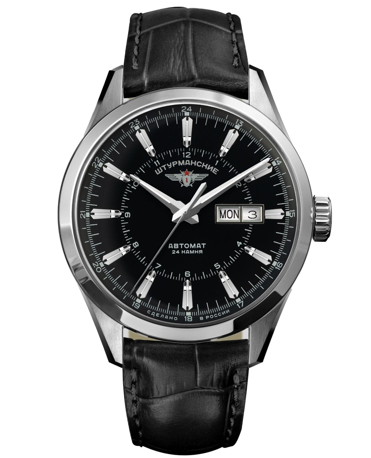 Мужские российские механические часы Штурманские NH36/1891770, механический механизм (автоматический калибр) с высокой точностью. Минеральное стеклоМинеральное стеклоМинеральное стекло представляет собой искусственно выращенный минерал кварца. Такое стекло отличается особой устойчивостью к повреждениям и царапинам. Уступает по некоторым качествам сапфировому стеклу. устойчивое к мелким механическим повреждениям. Класс водозащиты: 50 метров, позволит защитить корпус от случайных брызг или капель дождя. Корпус часов изготовлен из стали. Кожаный ремешок на стандартной застёжке. Чёткая, читаемая минутная шкала уходит за приделы видимой области циферблата, подчёркивая изящность ободка корпуса. Стрелки и метки с люминесцентным покрытиемЛюминесцентное покрытиеПозволяет считывать показания времени в темноте. Производители наносят на стрелки, часовые индексы, безель или поверхность циферблата светонакопительный состав, дающий холодное свечение.. Окошко даты находится в положении 3 часов.