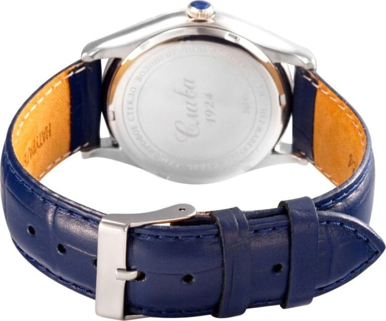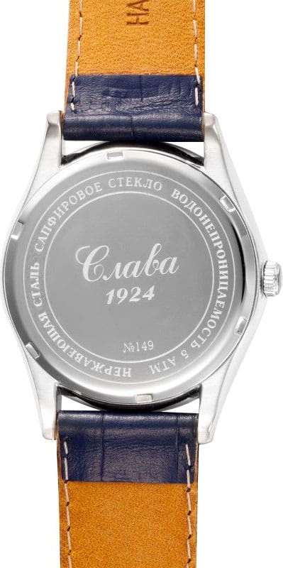 Российские механические часы с автоподзаводом Слава Премьер 1490856/300-8215. Корпус часов выполнен из стали, что придает им долговечность и устойчивость к внешним воздействиям. Сапфировое стеклоСапфировое стеклоПрочный и надёжный материал из кристалла сапфира синтетического происхождения, характеризующийся особой твёрдостью и устойчивостью к царапинам и повреждениям.. Класс водозащиты часов составляет 50 метров, позволит защитить корпус от случайных брызг или капель дождя. Кожаный браслет с стандартной застежкой обеспечивает комфортное ношение и надежную фиксацию на запястье. Эти часы идеально подойдут для повседневного использования, сочетая в себе стиль, надежность и функциональность. Окошко даты находится в положении 3 часа.