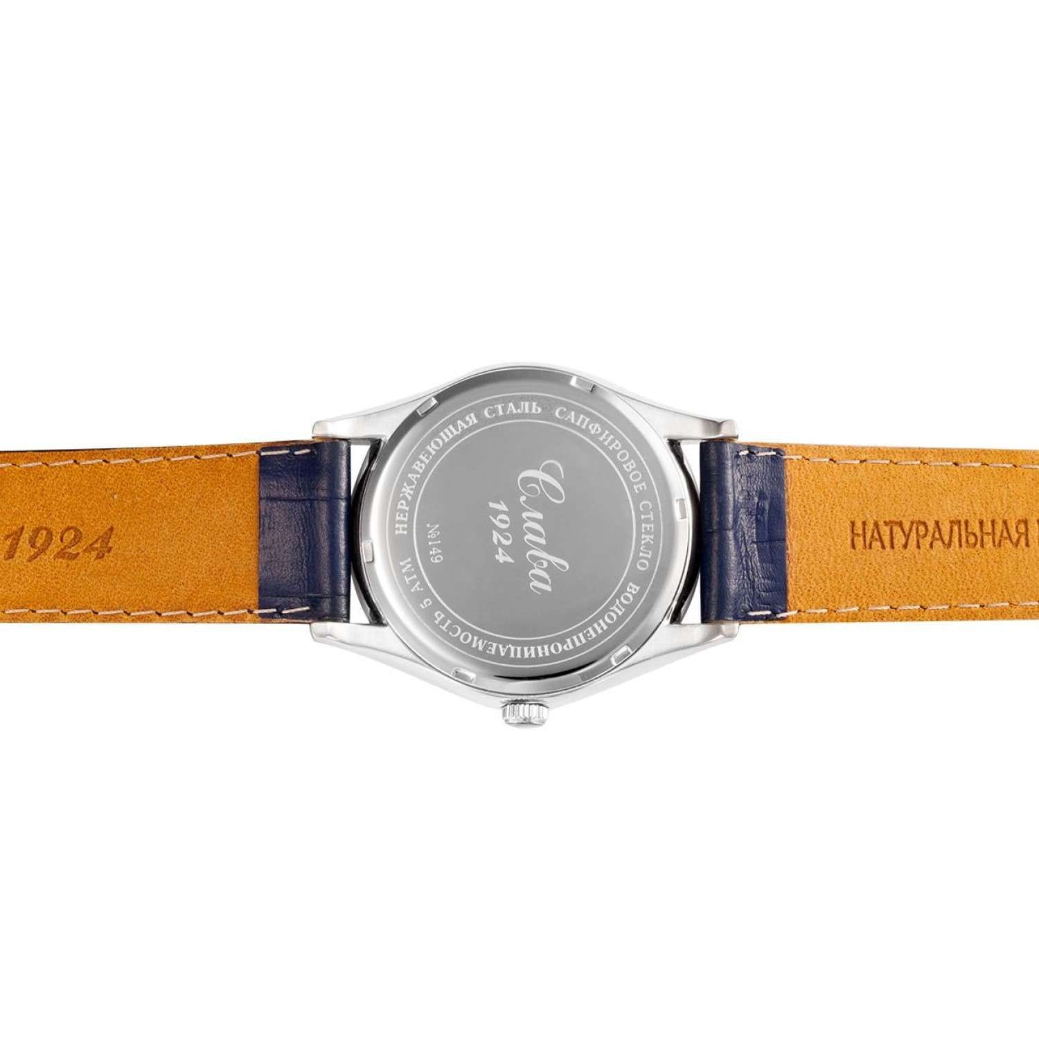 Российские механические наручные часы Слава Сенат 1490904/300-8215, которые станут идеальным аксессуаром для повседневного ношения. Эти часы сочетают в себе элегантность и практичность, предлагая безупречный стиль и надежность. Оснащенные механизмом Miyota 8215 с автоподзаводом, они обеспечивают точность и долговечность. Стальной корпус с сапфировым стекломСапфировое стеклоПрочный и надёжный материал из кристалла сапфира синтетического происхождения, характеризующийся особой твёрдостью и устойчивостью к царапинам и повреждениям. защищает синий циферблат с арабскими цифрами. Часы также имеют календарь с окошком даты на 3 часах и водозащиту до 50WR, что делает их надежными в различных условиях. Текстурированный кожаный синий ремешок с классической застежкой завершает этот изысканный образ.