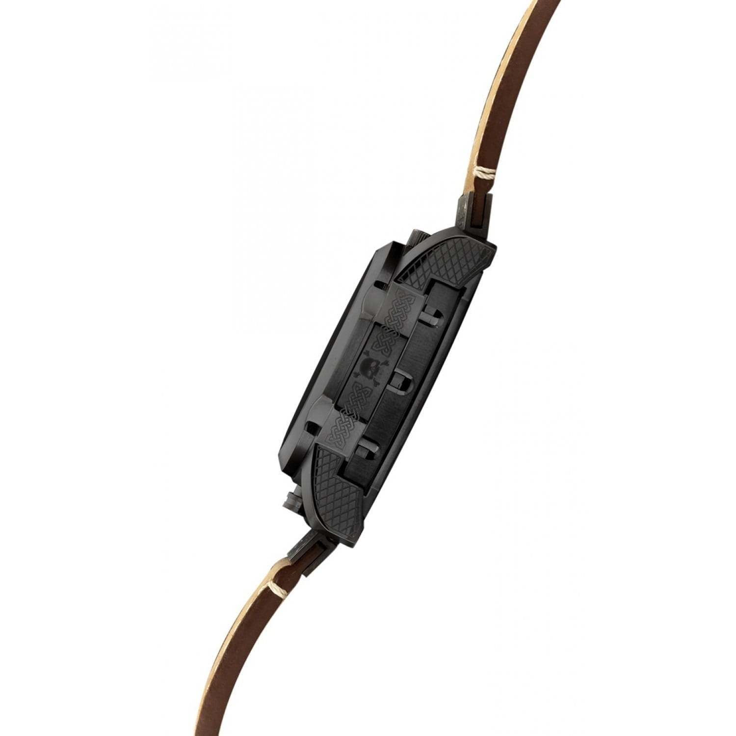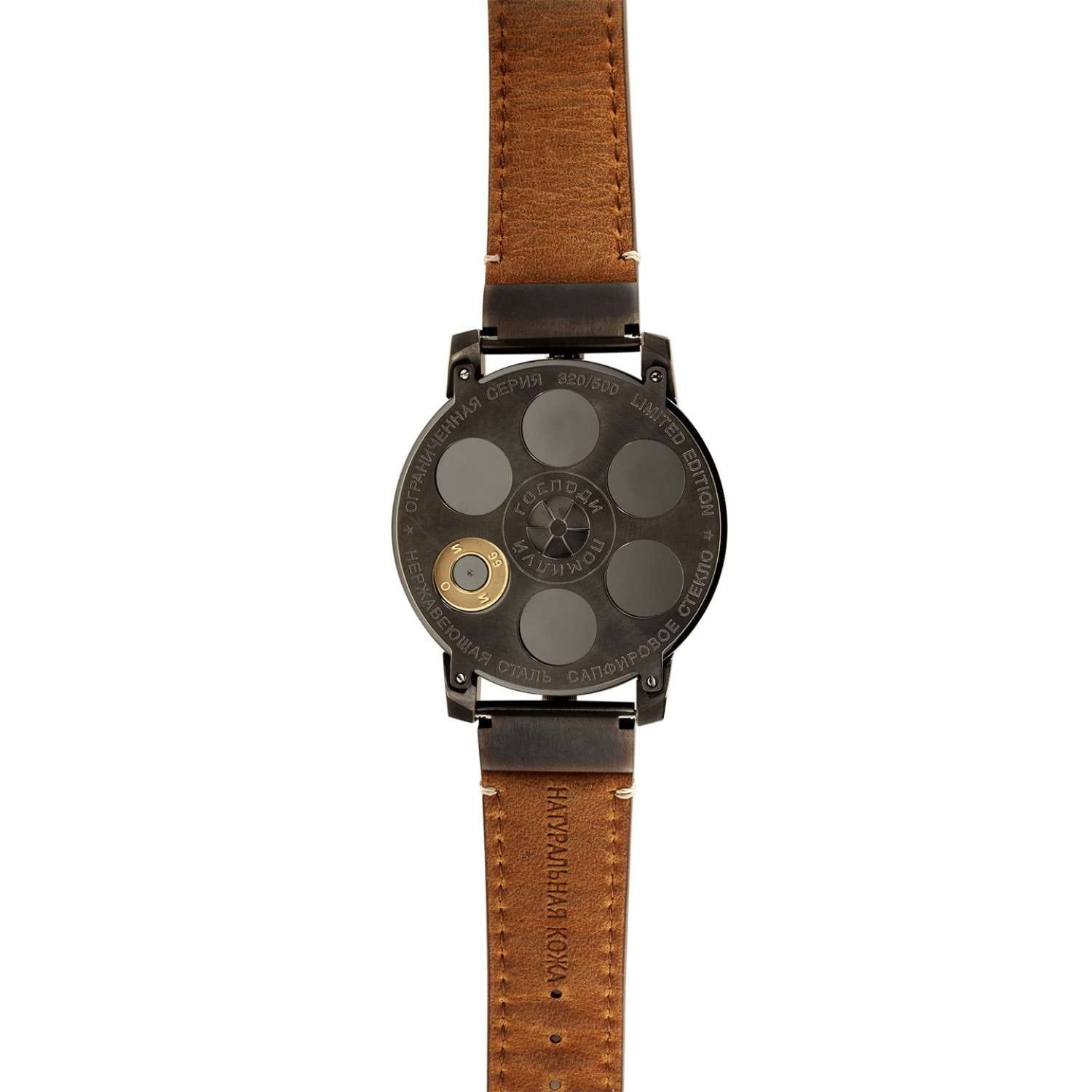 Российские механические наручные часы Слава Русская RUлетка 1906203/300-NH05, которые станут идеальным аксессуаром для повседневного ношения. Эти часы сочетают в себе элегантность и практичность, предлагая безупречный стиль и надежность. Оснащенные механизмом SEIKO NH05 с автоподзаводом, они обеспечивают точность и долговечность. Стальной корпус с черным PVDPVDУльтратонкое покрытие наносится в технике вакуумного напыления, сочетает в себе нитрид титана особой прочности со слоем золота или оксида хрома. Несёт в себе декоративную или защитную функцию. покрытием и сапфировым стекломСапфировое стеклоПрочный и надёжный материал из кристалла сапфира синтетического происхождения, характеризующийся особой твёрдостью и устойчивостью к царапинам и повреждениям. защищает циферблат с арабскими цифрами и необычными стрелками цифрами. БезельБезельВнешний ободок, закрепляющий стекло. В спортивных часах так называется поворотное кольцо с делениями на циферблате, выполняет роль таймера – замеряет отрезки времени на шкале. Неподвижный безель – элемент декора. Однонаправленно вращающийся безель на дайверских часах позволяет фиксировать моменты погружения и выныривания на поверхность. часов с PVDPVDУльтратонкое покрытие наносится в технике вакуумного напыления, сочетает в себе нитрид титана особой прочности со слоем золота или оксида хрома. Несёт в себе декоративную или защитную функцию. покрытием черного цвета. Особенность часов - искусственные бриллианты в глазах орлов и изображение черепов на циферблате. Это первые в мире часы с шестизарядным револьверным барабаном. В барабане — один патрон. Старинная забава русских офицеров и любителей острых ощущений со всего мира. Водозащита на часах до 10 ATM, что делает их надежными в различных условиях. Кожаный коричневый ремешок с застежкой «бабочка»Застёжка "бабочка"Такой вид застёжки дополняется предохранителями, помогающими избежать случайного раскрытия браслета. Обладают изящным исполнением. завершает этот изысканный образ.