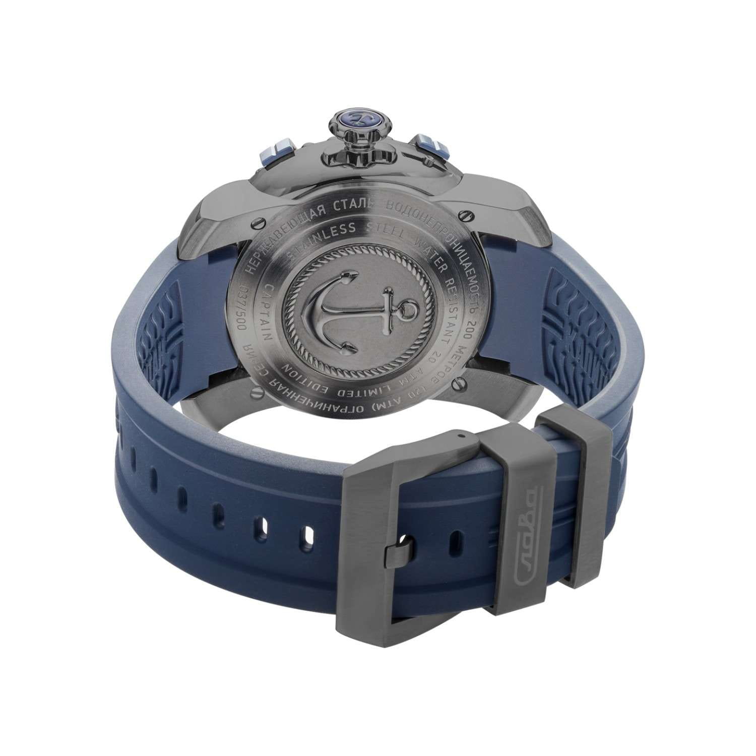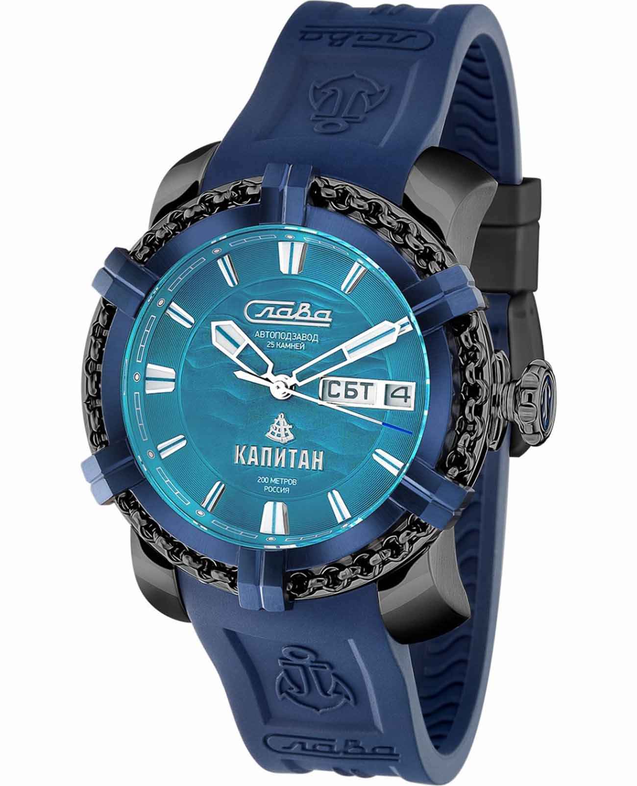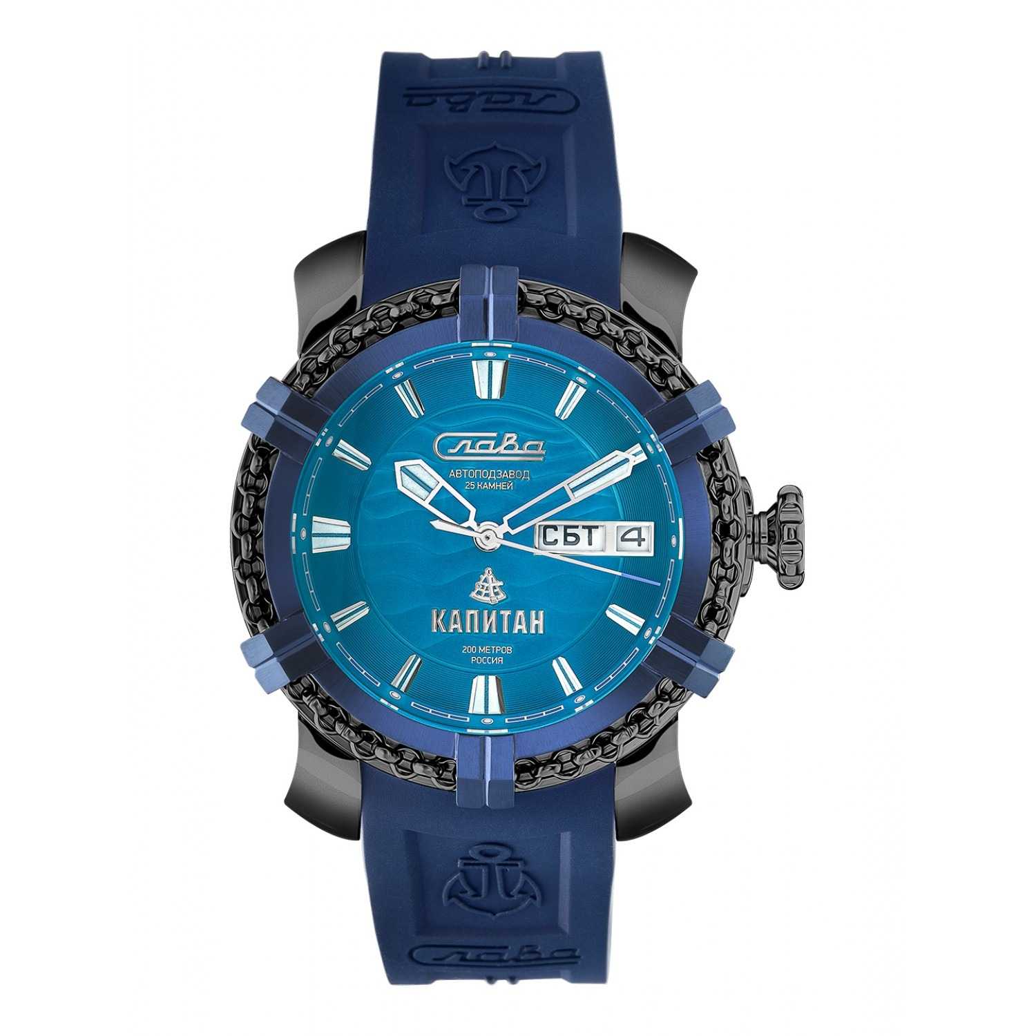 Российские механические наручные часы Слава Капитан 2476353/800-2427 — идеальный выбор для мужчин, ценящих стиль и надежность. Эта уникальная модель выпущена ограниченной серией в 500 экземпляров и сочетает в себе модный дизайн и высокое качество исполнения. Корпус часов выполнен из прочной стали с черным IP-покрытиемIP-покрытиеМетод ионного напыления. Демонстрирует повышенную устойчивость к истиранию, окислению и химическим веществам. Под воздействием высокого давления и температуры около 1500°C молекулы металла надёжно соединяются с частицами корпуса часов. и имеет диаметр 44 мм и толщину 16 мм, что придает им солидный и мужественный вид. БезельБезельВнешний ободок, закрепляющий стекло. В спортивных часах так называется поворотное кольцо с делениями на циферблате, выполняет роль таймера – замеряет отрезки времени на шкале. Неподвижный безель – элемент декора. Однонаправленно вращающийся безель на дайверских часах позволяет фиксировать моменты погружения и выныривания на поверхность. часов с IP-покрытиемIP-покрытиеМетод ионного напыления. Демонстрирует повышенную устойчивость к истиранию, окислению и химическим веществам. Под воздействием высокого давления и температуры около 1500°C молекулы металла надёжно соединяются с частицами корпуса часов. покрытием сине-черного цвета, выполненный в форме штурвала под стать названию коллекции "Капитан", придаёт часам неповторимый морской характер и стиль. Водозащита до 20 ATM позволяет использовать часы даже при погружении в воду, что делает их отличным выбором для активных мужчин. Голубой циферблат с метками и сапфировое стеклоСапфировое стеклоПрочный и надёжный материал из кристалла сапфира синтетического происхождения, характеризующийся особой твёрдостью и устойчивостью к царапинам и повреждениям. обеспечивают долговечность и устойчивость к царапинам. Механический механизм "Слава 2427" с автоподзаводом и возможностью ручного подзавода гарантирует точность и надежность, а двойной календарь добавляет функциональности. На 3 часах расположено окошко с указателем даты и дня недели. Часы комплектуются прочным силиконовым ремешком со стандартной застежкой, обеспечивающим комфорт и надежную фиксацию на запястье. Задняя крышка крепится на 4-х винтах и украшена объемным изображением якоря. Индивидуальный серийный номер. Упакованы в стильную подарочную коробку из экокожи, они станут отличным подарком для любого особого случая. С часами Слава из коллекции Капитан вы подчеркнете свой статус и вкус, оставаясь верным российским традициям качества и стиля.