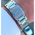 Часы работают на японском кварцевом механизме, что гарантирует точное время без необходимости подзаводки. Модель также оснащена функциями отображения даты, дня недели, 24-часовым указателем времени и вторым часовым поясомВторой часовой поясФункция, позволяющая отображать время двух часовых поясов одновременно., делая ее практичной для повседневного использования.