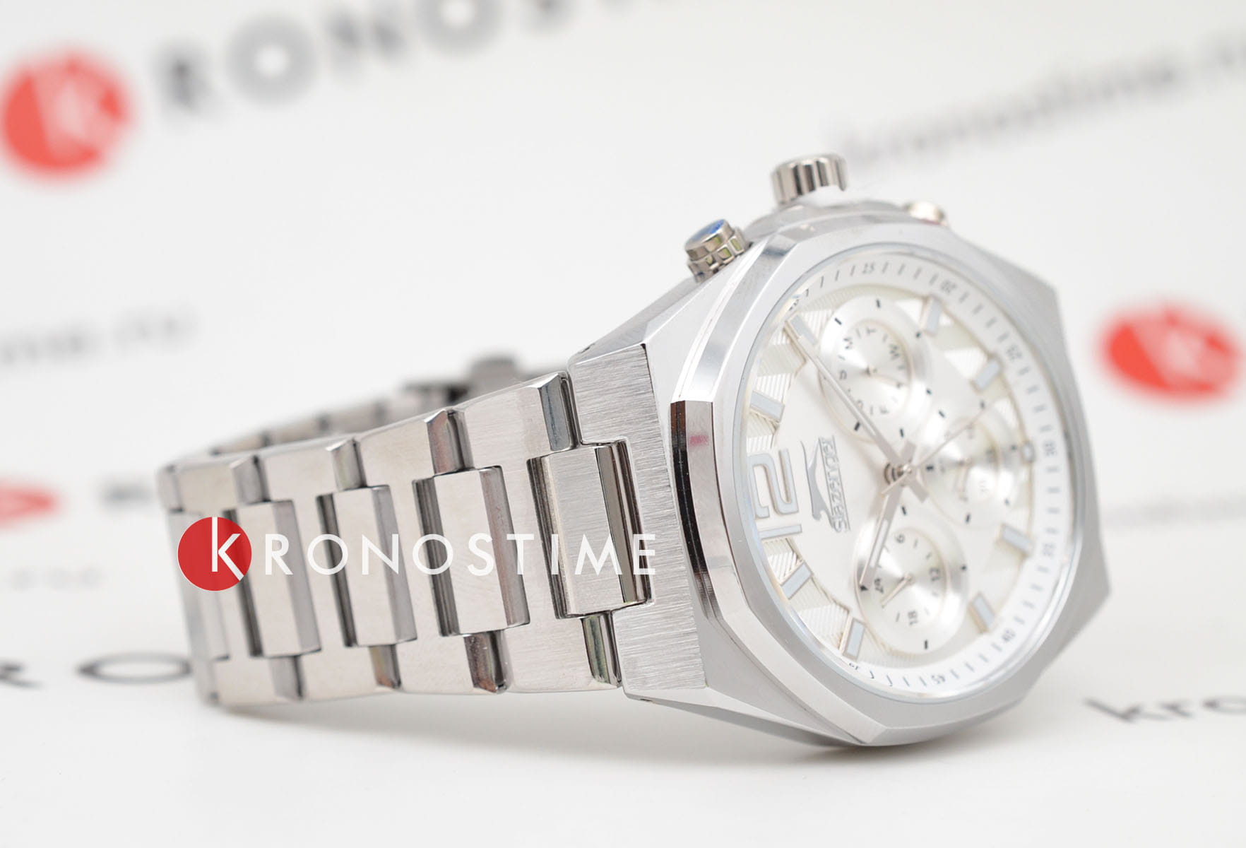 Часы Slazenger SL.09.2106.2.01 представляют собой идеальное сочетание элегантности и функциональности для стильных мужчин. Их серебристый циферблат, защищенный прочным минеральным стекломМинеральное стеклоМинеральное стекло представляет собой искусственно выращенный минерал кварца. Такое стекло отличается особой устойчивостью к повреждениям и царапинам. Уступает по некоторым качествам сапфировому стеклу., обрамлен корпусом из суперметалла диаметром 41 мм. Кварцевый механизм гарантирует точность, а водозащита 5 ATM позволяет не волноваться о случайных брызгах. Стальной браслет из суперметалла с раскладной застёжкойРаскладная застёжкаТакой тип застёжки используется только на браслетах из металла. Она никогда не раскрывается полностью, происходит разделение на 2 и более частей. Раскладывающая застёжка снизит вероятность потери часов к минимуму. придает часовому изделию современный и изысканный вид. Функции 24-часового указателя времени, а также отображение даты и дня недели обеспечивают дополнительное удобство в повседневной жизни. Люминесцентное покрытиеЛюминесцентное покрытиеПозволяет считывать показания времени в темноте. Производители наносят на стрелки, часовые индексы, безель или поверхность циферблата светонакопительный состав, дающий холодное свечение. на стрелках и метках обеспечивает удобство считывания времени в темное время суток.