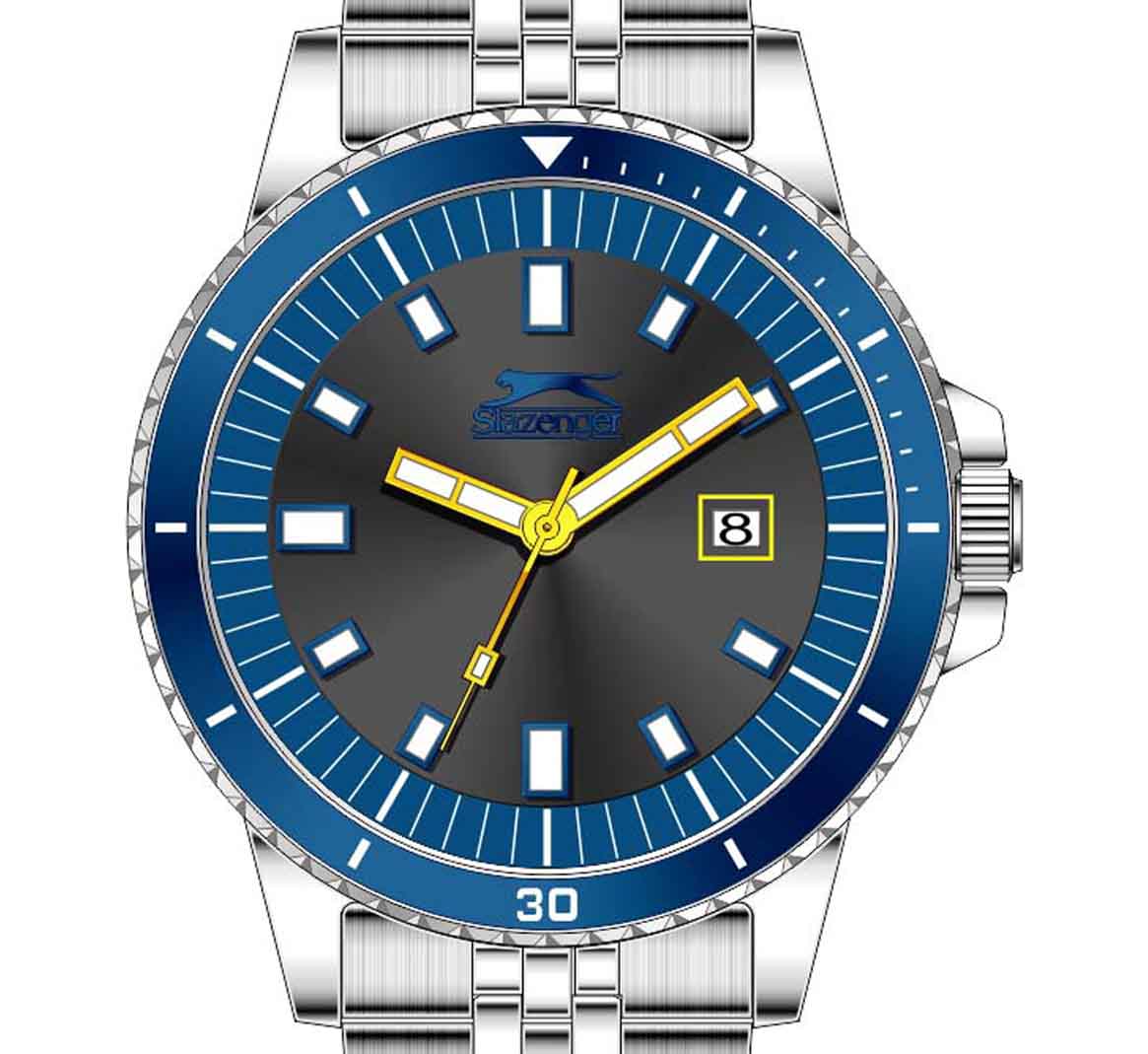 Часы Slazenger SL.09.2135.1.01 воплощают в себе элегантность и практичность, идеально подходящие для современных мужчин. Их черно-синий циферблат, защищенный минеральным стекломМинеральное стеклоМинеральное стекло представляет собой искусственно выращенный минерал кварца. Такое стекло отличается особой устойчивостью к повреждениям и царапинам. Уступает по некоторым качествам сапфировому стеклу., заключен в серебристый корпус диаметром 45 мм, который изготовлен из прочного суперметалла. Часы оснащены удобным окошком даты и стрелками контрастного цвета. Надежный кварцевый механизм обеспечивает точность, а водозащита 5 ATM делает их устойчивыми к воздействию воды. Стальной браслет из суперметалла имеет раскладную застёжкуРаскладная застёжкаТакой тип застёжки используется только на браслетах из металла. Она никогда не раскрывается полностью, происходит разделение на 2 и более частей. Раскладывающая застёжка снизит вероятность потери часов к минимуму., что подчеркивает современный стиль и позволяет легко снимать часы. Люминесцентное покрытиеЛюминесцентное покрытиеПозволяет считывать показания времени в темноте. Производители наносят на стрелки, часовые индексы, безель или поверхность циферблата светонакопительный состав, дающий холодное свечение. на стрелках и метках обеспечивает отличную видимость в темноте.