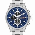 Часы Slazenger SL.09.2139.2.02 воплощают в себе элегантность и практичность, идеально подходящие для современных мужчин. Их синий циферблат защищен минеральным стекломМинеральное стеклоМинеральное стекло представляет собой искусственно выращенный минерал кварца. Такое стекло отличается особой устойчивостью к повреждениям и царапинам. Уступает по некоторым качествам сапфировому стеклу. и заключен в серебристый корпус диаметром 46 мм, который изготовлен из прочного суперметалла. Часы оснащены указателями второго часового пояса, дня недели и текущего времени в 24-х часовом формате на дополнительных малых циферблатах. Окошко даты расположено в положении 3 часов. Стрелки и метки имеют люминесцентное покрытиеЛюминесцентное покрытиеПозволяет считывать показания времени в темноте. Производители наносят на стрелки, часовые индексы, безель или поверхность циферблата светонакопительный состав, дающий холодное свечение., что позволяет легко считывать время в темноте. Надежный кварцевый механизм обеспечивает точность, а водозащита 5 ATM делает их устойчивыми к воздействию воды. Браслет из суперметалла имеет раскладную застёжкуРаскладная застёжкаТакой тип застёжки используется только на браслетах из металла. Она никогда не раскрывается полностью, происходит разделение на 2 и более частей. Раскладывающая застёжка снизит вероятность потери часов к минимуму., что подчеркивает современный стиль и позволяет легко снимать часы. Ширина ремешка 22 мм.