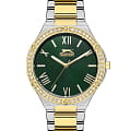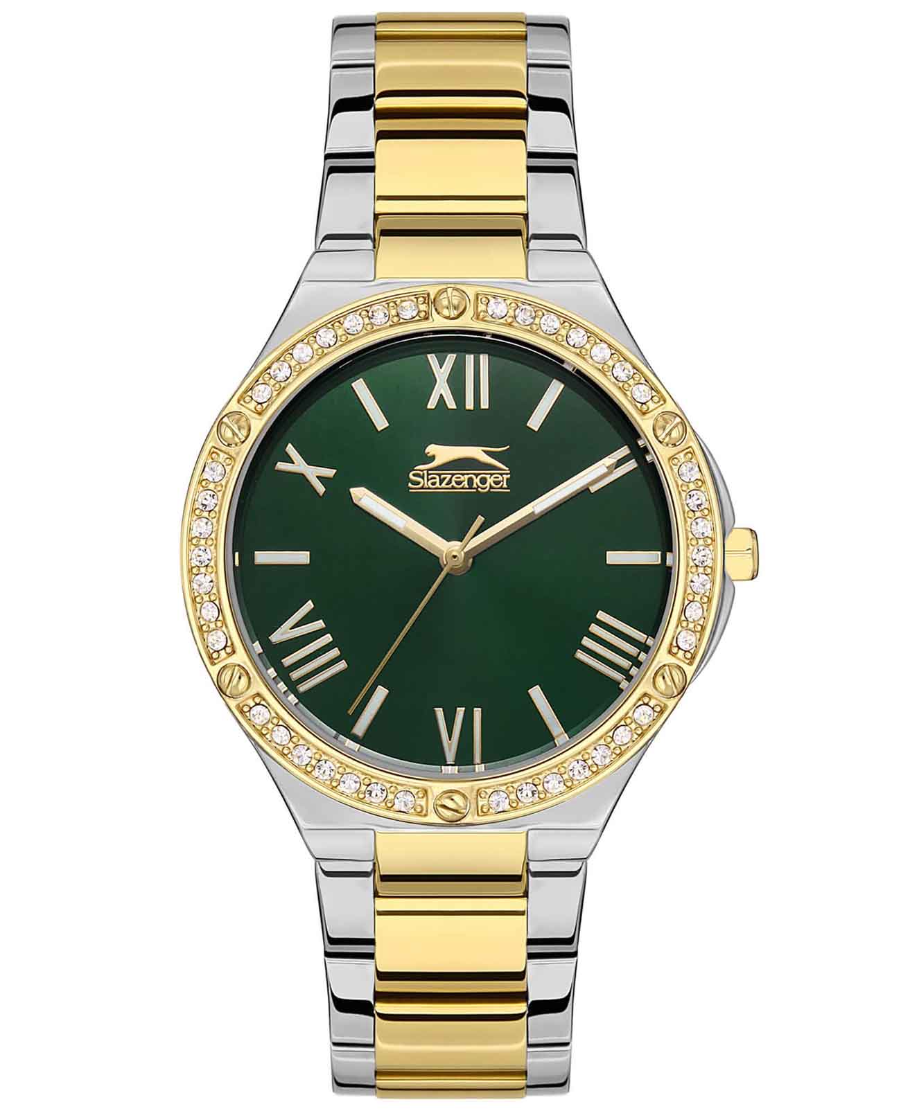 Женские часы Slazenger SL.09.2141.3.03 - это изысканный аксессуар, сочетающий в себе элегантность и функциональность. Модель оснащена надежным кварцевым механизмом и обладает водозащитой 3 АТМ, что позволяет не беспокоиться о случайных брызгах. Корпус часов диаметром 35 мм и толщиной 9 мм выполнен из прочного суперметалла, а циферблат защищен минеральным стекломМинеральное стеклоМинеральное стекло представляет собой искусственно выращенный минерал кварца. Такое стекло отличается особой устойчивостью к повреждениям и царапинам. Уступает по некоторым качествам сапфировому стеклу.. БезельБезельВнешний ободок, закрепляющий стекло. В спортивных часах так называется поворотное кольцо с делениями на циферблате, выполняет роль таймера – замеряет отрезки времени на шкале. Неподвижный безель – элемент декора. Однонаправленно вращающийся безель на дайверских часах позволяет фиксировать моменты погружения и выныривания на поверхность. инкрустирован фианитами. Браслет, также изготовленный из суперметалла с частичным IP-покрытиемIP-покрытиеМетод ионного напыления. Демонстрирует повышенную устойчивость к истиранию, окислению и химическим веществам. Под воздействием высокого давления и температуры около 1500°C молекулы металла надёжно соединяются с частицами корпуса часов., имеет раскладную застёжкуРаскладная застёжкаТакой тип застёжки используется только на браслетах из металла. Она никогда не раскрывается полностью, происходит разделение на 2 и более частей. Раскладывающая застёжка снизит вероятность потери часов к минимуму., что подчеркивает современный стиль и позволяет легко снимать часы. Особую привлекательность часам придают декоративные элементы в виде фианитов. Весом всего 90 грамм, эти часы станут легким и стильным дополнением к любому образу.