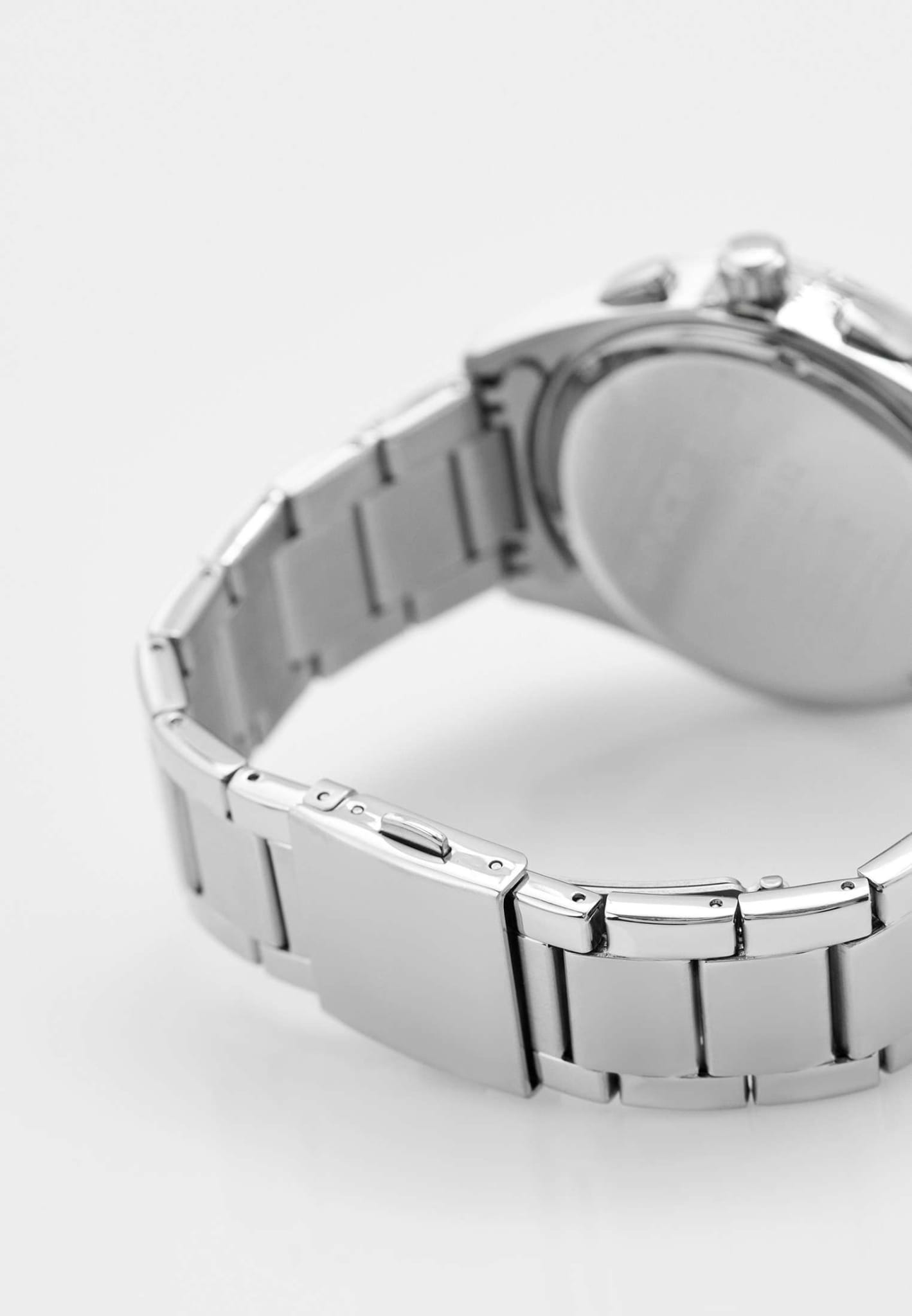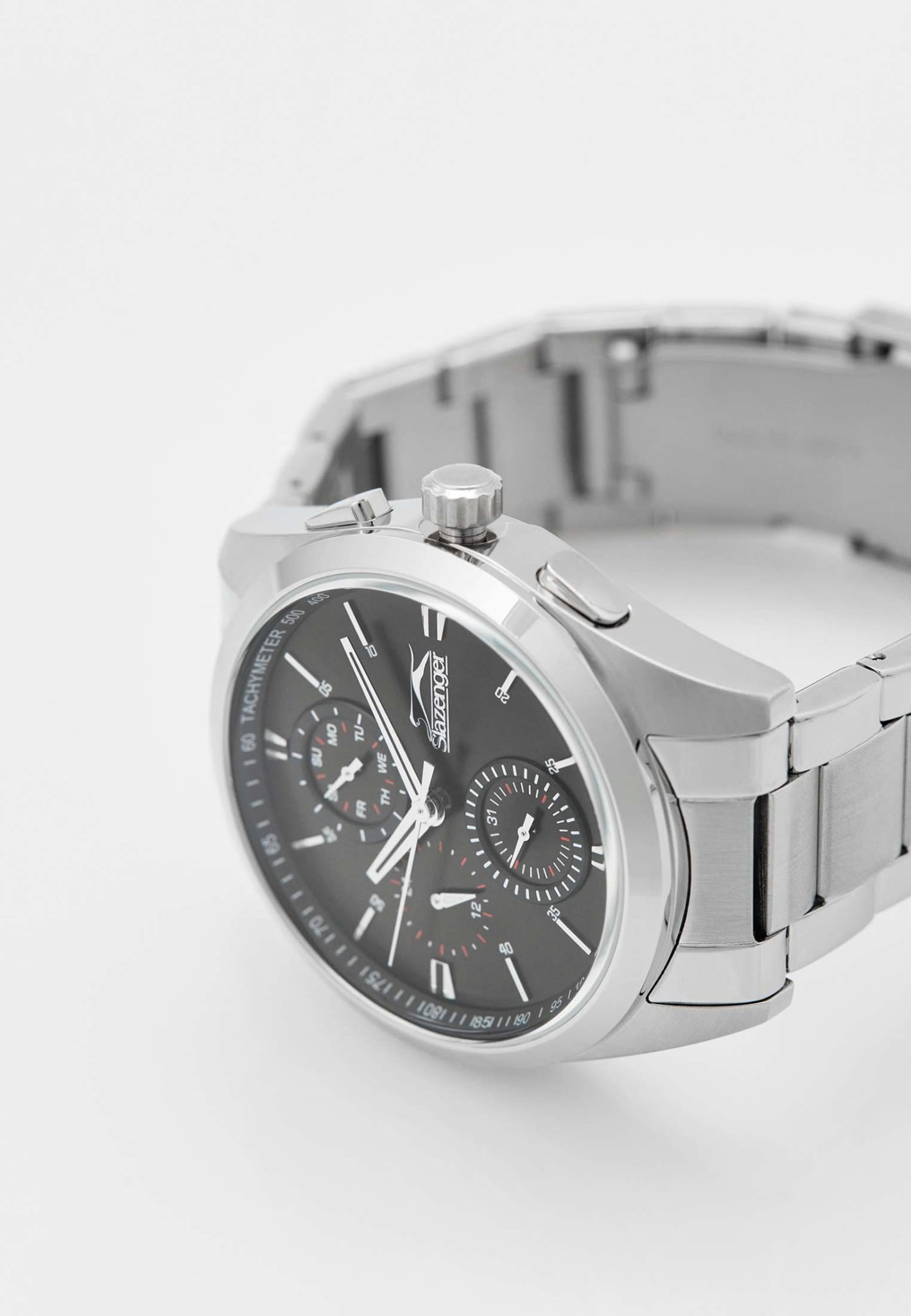Часы Slazenger SL.09.2215.2.02 представляют собой стильные мужские наручные часы, которые сочетают в себе элегантный дизайн и функциональность. Изготовленные в Англии, эти кварцевые часы оснащены прочным металлическим корпусом и металлическим браслетом с раскладной застёжкойРаскладная застёжкаТакой тип застёжки используется только на браслетах из металла. Она никогда не раскрывается полностью, происходит разделение на 2 и более частей. Раскладывающая застёжка снизит вероятность потери часов к минимуму., который обеспечивает надежную фиксацию на запястье. Минеральное стеклоМинеральное стеклоМинеральное стекло представляет собой искусственно выращенный минерал кварца. Такое стекло отличается особой устойчивостью к повреждениям и царапинам. Уступает по некоторым качествам сапфировому стеклу. защищает черный циферблат от царапин, а водозащита WR 50 позволяет использовать их в условиях повышенной влажности. Диаметр корпуса составляет 43 мм, а толщина — 14 мм, что делает часы удобными для ежедневного ношения. Ширина ремешка — 22 мм, что обеспечивает комфорт и стильный вид на руке. Дополнительные функции включают отображение второго часового поясаВторой часовой поясФункция, позволяющая отображать время двух часовых поясов одновременно., дня недели и текущего времени в 24-часовом формате, а также наличие окошка даты для удобства пользователя. Стрелки снабжены люминесцентным покрытиемЛюминесцентное покрытиеПозволяет считывать показания времени в темноте. Производители наносят на стрелки, часовые индексы, безель или поверхность циферблата светонакопительный состав, дающий холодное свечение., что позволяет легко считывать время в темноте. Часы также оснащены тахиметромТахиметрРазмеченная шкала, располагается на ободке или безеле часов. Тахиметр позволяет рассчитать скорость на определённом участке пути, расстояние измеряется в километрах или милях., что добавляет им функциональности и может быть полезно для измерения скорости.