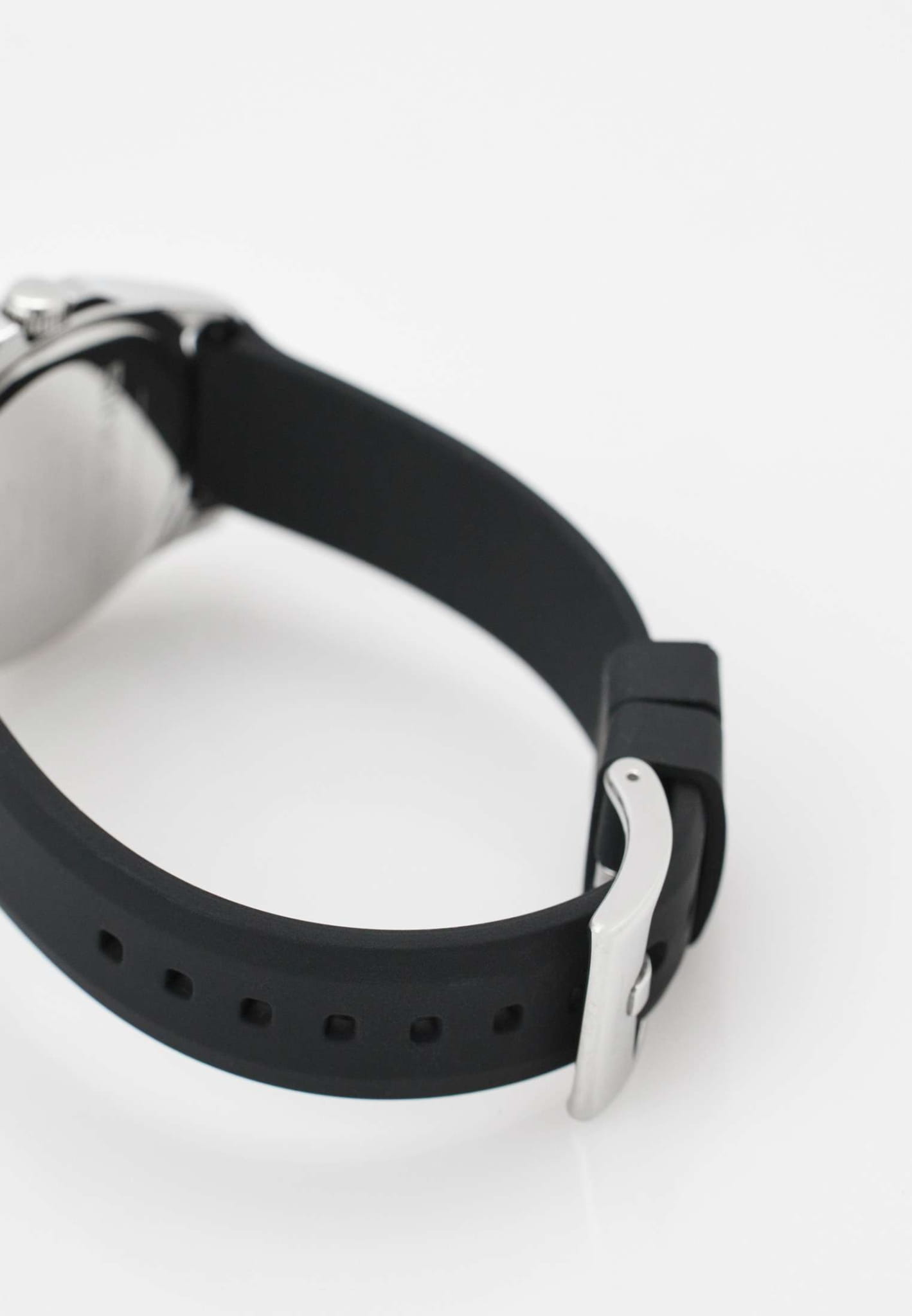 Часы Slazenger SL.09.2239.3.01 – это изысканный аксессуар, который станет стильным акцентом любого образа. Модель оснащена надежным кварцевым механизмом. Корпус из прочного металла размером 34х34 мм украшен россыпью сверкающих фианитов по безелюБезельВнешний ободок, закрепляющий стекло. В спортивных часах так называется поворотное кольцо с делениями на циферблате, выполняет роль таймера – замеряет отрезки времени на шкале. Неподвижный безель – элемент декора. Однонаправленно вращающийся безель на дайверских часах позволяет фиксировать моменты погружения и выныривания на поверхность., что придает часам особое сияние и элегантность. Белый перламутровый циферблат с логотипом бренда защищен стойким к царапинам минеральным стекломМинеральное стеклоМинеральное стекло представляет собой искусственно выращенный минерал кварца. Такое стекло отличается особой устойчивостью к повреждениям и царапинам. Уступает по некоторым качествам сапфировому стеклу.. Четкие часовые метки в виде лаконичных штрихов и крупная арабская цифра 12 обеспечивают удобство чтения времени. Заводная головка с рифлением дополнена защитой для повышения долговечности. Резиновый черный ремешок шириной 18 мм надежно фиксируется на запястье с помощью классической застежки. Для удобства использования в темное время суток предусмотрено люминесцентное покрытиеЛюминесцентное покрытиеПозволяет считывать показания времени в темноте. Производители наносят на стрелки, часовые индексы, безель или поверхность циферблата светонакопительный состав, дающий холодное свечение. стрелок. Водозащита 30WR позволяет не беспокоиться о случайных брызгах. Вес изделия составляет 43 грамма, что делает часы комфортными для ежедневного ношения. Эти часы идеально подойдут для тех, кто ценит гармонию стиля, качества и функциональности.