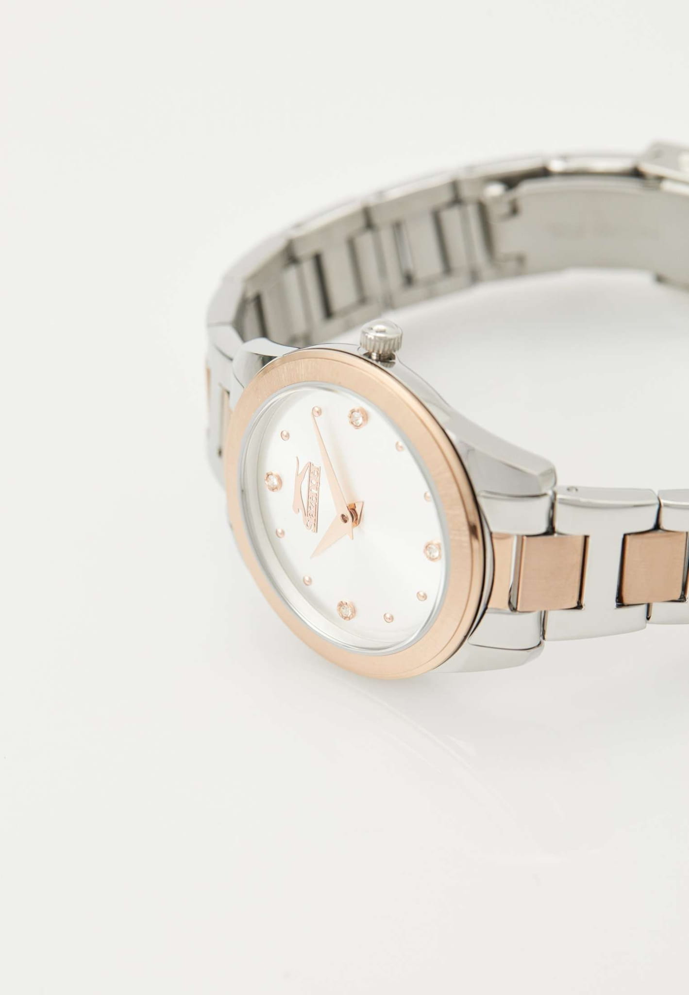 Часы Slazenger SL.09.2253.3.03 — это стильная и элегантная модель, созданная для тех, кто ценит утонченность и надежность. Корпус выполнен из прочного металла, а изящный серебристый браслет с частичным розово-золотистым IP-покрытиемIP-покрытиеМетод ионного напыления. Демонстрирует повышенную устойчивость к истиранию, окислению и химическим веществам. Под воздействием высокого давления и температуры около 1500°C молекулы металла надёжно соединяются с частицами корпуса часов. оснащён удобной раскладной застёжкойРаскладная застёжкаТакой тип застёжки используется только на браслетах из металла. Она никогда не раскрывается полностью, происходит разделение на 2 и более частей. Раскладывающая застёжка снизит вероятность потери часов к минимуму.. На безельБезельВнешний ободок, закрепляющий стекло. В спортивных часах так называется поворотное кольцо с делениями на циферблате, выполняет роль таймера – замеряет отрезки времени на шкале. Неподвижный безель – элемент декора. Однонаправленно вращающийся безель на дайверских часах позволяет фиксировать моменты погружения и выныривания на поверхность. нанесено розово-золотистое IP-покрытиеIP-покрытиеМетод ионного напыления. Демонстрирует повышенную устойчивость к истиранию, окислению и химическим веществам. Под воздействием высокого давления и температуры около 1500°C молекулы металла надёжно соединяются с частицами корпуса часов.. Минеральное стеклоМинеральное стеклоМинеральное стекло представляет собой искусственно выращенный минерал кварца. Такое стекло отличается особой устойчивостью к повреждениям и царапинам. Уступает по некоторым качествам сапфировому стеклу. защищает серебристый циферблат, украшенный сияющими кристаллами, придающими аксессуару особый шарм. Кварцевый механизм обеспечивает точность хода, а водозащита класса WR 30 позволяет не беспокоиться о случайных брызгах. Диаметр корпуса составляет 33 мм, ширина браслета — 16 мм, толщина корпуса — 8 мм, что делает эти часы аккуратными и комфортными для повседневной носки. Модель весит 70 грамм. Часы прекрасно дополнят как деловой, так и повседневный образ, подчеркивая индивидуальность своей обладательницы.