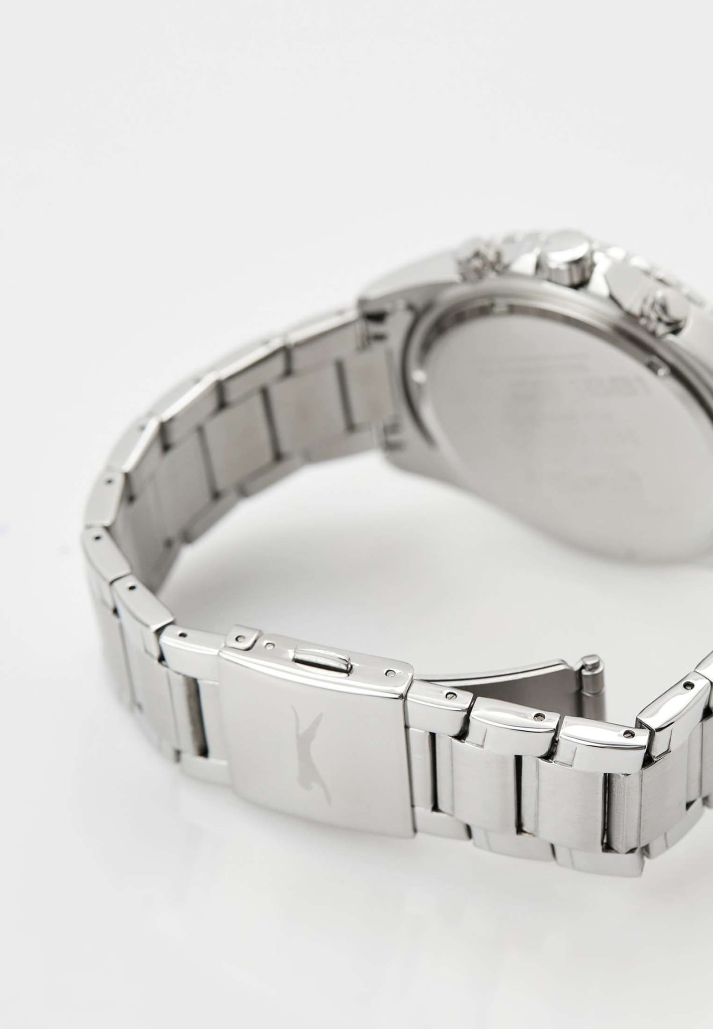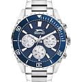 Часы Slazenger SL.09.2273.2.02 – стильный и функциональный аксессуар, который станет достойным дополнением к вашему образу. Модель оснащена надежным кварцевым механизмом, заключенным в корпус из инновационного суперметалла – прочного сплава на основе меди с пониженным содержанием цинка и никеля и специальным покрытием, устойчивым к износу. На безельБезельВнешний ободок, закрепляющий стекло. В спортивных часах так называется поворотное кольцо с делениями на циферблате, выполняет роль таймера – замеряет отрезки времени на шкале. Неподвижный безель – элемент декора. Однонаправленно вращающийся безель на дайверских часах позволяет фиксировать моменты погружения и выныривания на поверхность. нанесено синее IP-покрытиеIP-покрытиеМетод ионного напыления. Демонстрирует повышенную устойчивость к истиранию, окислению и химическим веществам. Под воздействием высокого давления и температуры около 1500°C молекулы металла надёжно соединяются с частицами корпуса часов., что придает аксессуару утончённый и универсальный внешний вид. Синий циферблат под минеральным стекломМинеральное стеклоМинеральное стекло представляет собой искусственно выращенный минерал кварца. Такое стекло отличается особой устойчивостью к повреждениям и царапинам. Уступает по некоторым качествам сапфировому стеклу. дополнен отдельными счетчиками: 24-часовой указатель времени, индикаторы даты и дня недели. Диаметр корпуса составляет 44 мм, а толщина – 12 мм, что обеспечивает комфортную посадку на запястье и подчёркивает современный стиль часов.Браслет из суперметалла и с раскладной застёжкойРаскладная застёжкаТакой тип застёжки используется только на браслетах из металла. Она никогда не раскрывается полностью, происходит разделение на 2 и более частей. Раскладывающая застёжка снизит вероятность потери часов к минимуму. обеспечивает комфортную посадку. Стрелки и метки с люминесцентным покрытиемЛюминесцентное покрытиеПозволяет считывать показания времени в темноте. Производители наносят на стрелки, часовые индексы, безель или поверхность циферблата светонакопительный состав, дающий холодное свечение. удобно подсвечиваются в темноте после зарядки на свету. Водонепроницаемость 5 АТМ защищает механизм от брызг и дождя, позволяя не беспокоиться о сохранности аксессуара в повседневной жизни. Эта модель станет отличным выбором для ежедневного ношения или особых случаев и прекрасным подарком для мужчины к любому празднику.