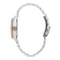 Женские кварцевые часы Slazenger SL.09.2317.4.04 — это выразительный и функциональный аксессуар, сочетающий стиль, прочность и насыщенную комплектацию. Безель и браслет выполнены из суперметалла с частичным IP-покрытиемIP-покрытиеМетод ионного напыления. Демонстрирует повышенную устойчивость к истиранию, окислению и химическим веществам. Под воздействием высокого давления и температуры около 1500°C молекулы металла надёжно соединяются с частицами корпуса часов.. Циферблат чёрного цвета защищён минеральным стекломМинеральное стеклоМинеральное стекло представляет собой искусственно выращенный минерал кварца. Такое стекло отличается особой устойчивостью к повреждениям и царапинам. Уступает по некоторым качествам сапфировому стеклу. и оформлен с вынесенными малыми циферблатами для индикации дня недели, даты и времени в 24-часовом формате. Стрелки и метки оснащены люминесцентным покрытиемЛюминесцентное покрытиеПозволяет считывать показания времени в темноте. Производители наносят на стрелки, часовые индексы, безель или поверхность циферблата светонакопительный состав, дающий холодное свечение., обеспечивающим хорошую читаемость в темноте. Браслет комбинированного цвета фиксируется на раскладной застёжкеРаскладная застёжкаТакой тип застёжки используется только на браслетах из металла. Она никогда не раскрывается полностью, происходит разделение на 2 и более частей. Раскладывающая застёжка снизит вероятность потери часов к минимуму., обеспечивая удобство и надёжность ношения. Водонепроницаемость 30 м позволяет использовать часы в повседневных условиях, защищая от случайных брызг и капель дождя. Модель подчёркивает индивидуальность владельца и идеально подходит как для повседневного, так и для торжественного образа.