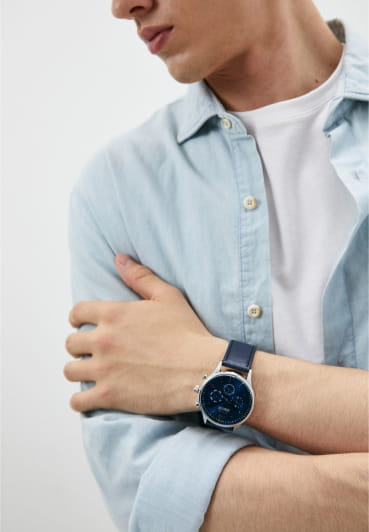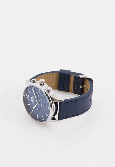 Мужские кварцевые часы Slazenger — это выразительный и функциональный аксессуар. Корпус диаметром 45 мм и толщиной 12 мм выполнен из суперметалла. Циферблат синего цвета оформлен индексами, стрелками и тремя вынесенными субциферблатами: для отображения дня недели, даты и 24-часового формата времени. Циферблат защищён минеральным стекломМинеральное стеклоМинеральное стекло представляет собой искусственно выращенный минерал кварца. Такое стекло отличается особой устойчивостью к повреждениям и царапинам. Уступает по некоторым качествам сапфировому стеклу.. Часы оснащены кожаным ремешком на классической пряжке. Водонепроницаемость 50 м позволяет использовать часы в повседневных условиях. Идеальный выбор для тех, кто ценит стиль и качество.