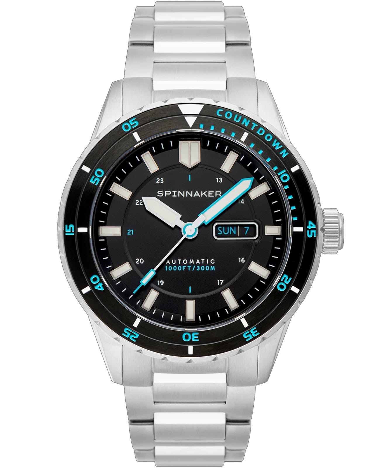Мужские итальянские часы Spinnaker Hass SP-5099-22 с надёжным автоматическим механизмом. Сапфировое стеклоСапфировое стеклоПрочный и надёжный материал из кристалла сапфира синтетического происхождения, характеризующийся особой твёрдостью и устойчивостью к царапинам и повреждениям. с антибликовым покрытиемАнтибликовое покрытиеСлой оксида металла в 0,13-0,3 микрон, благодаря которому стекло часов не бликует и не отражает свет. Антибликовое покрытие уменьшает отражение света в 10 раз, обеспечивая отличную читаемость показателей циферблата., устойчивое к появлению царапин и обладающее высокой прозрачностью. Класс водозащиты: 300 метров, позволит плавать, нырять и заниматься другими водными видами спорта. Корпус часов изготовлен из нержавеющей стали с поворотным безелемБезельВнешний ободок, закрепляющий стекло. В спортивных часах так называется поворотное кольцо с делениями на циферблате, выполняет роль таймера – замеряет отрезки времени на шкале. Неподвижный безель – элемент декора. Однонаправленно вращающийся безель на дайверских часах позволяет фиксировать моменты погружения и выныривания на поверхность. с IP-покрытиемIP-покрытиеМетод ионного напыления. Демонстрирует повышенную устойчивость к истиранию, окислению и химическим веществам. Под воздействием высокого давления и температуры около 1500°C молекулы металла надёжно соединяются с частицами корпуса часов.. Браслет выполнен из нержавеющей стали на раскладной застёжкеРаскладная застёжкаТакой тип застёжки используется только на браслетах из металла. Она никогда не раскрывается полностью, происходит разделение на 2 и более частей. Раскладывающая застёжка снизит вероятность потери часов к минимуму.. Стрелки и метки с люминесцентным покрытиемЛюминесцентное покрытиеПозволяет считывать показания времени в темноте. Производители наносят на стрелки, часовые индексы, безель или поверхность циферблата светонакопительный состав, дающий холодное свечение.. Окошко дня недели и даты находится в положении 3 часа.