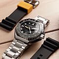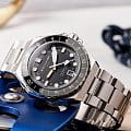 Мужские итальянские механические часы с автоподзаводом Spinnaker Dumas GMTGMTОтображение времени второго часового пояса.Такая функция особенно актуальна для путешественников и бизнесменов,которые общаются с людьми из разных стран,теперь вы всегда будете знать,какой час у вашего партнёра или близкого человека. SP-5119-11, механический механизм (автоматический калибр) с высокой точностью. Циферблат с люминесцентным покрытиемЛюминесцентное покрытиеПозволяет считывать показания времени в темноте. Производители наносят на стрелки, часовые индексы, безель или поверхность циферблата светонакопительный состав, дающий холодное свечение. стрелок, меток и безеляБезельВнешний ободок, закрепляющий стекло. В спортивных часах так называется поворотное кольцо с делениями на циферблате, выполняет роль таймера – замеряет отрезки времени на шкале. Неподвижный безель – элемент декора. Однонаправленно вращающийся безель на дайверских часах позволяет фиксировать моменты погружения и выныривания на поверхность. дополнен сапфировым стекломСапфировое стеклоПрочный и надёжный материал из кристалла сапфира синтетического происхождения, характеризующийся особой твёрдостью и устойчивостью к царапинам и повреждениям. с антибликовым покрытием, устойчивым к появлению царапин и обладающее высокой прозрачностью. Класс водозащиты: 300 метров (погружение с аквалангом). Корпус часов изготовлен из нержавеющей стали 316L. Вращающийся безельБезельВнешний ободок, закрепляющий стекло. В спортивных часах так называется поворотное кольцо с делениями на циферблате, выполняет роль таймера – замеряет отрезки времени на шкале. Неподвижный безель – элемент декора. Однонаправленно вращающийся безель на дайверских часах позволяет фиксировать моменты погружения и выныривания на поверхность. с IP-покрытиемIP-покрытиеМетод ионного напыления. Демонстрирует повышенную устойчивость к истиранию, окислению и химическим веществам. Под воздействием высокого давления и температуры около 1500°C молекулы металла надёжно соединяются с частицами корпуса часов.. Стальной браслет на раскладной застёжкеРаскладная застёжкаТакой тип застёжки используется только на браслетах из металла. Она никогда не раскрывается полностью, происходит разделение на 2 и более частей. Раскладывающая застёжка снизит вероятность потери часов к минимуму.. В комплект входит сменный силиконовый ремешок.