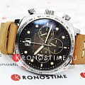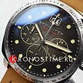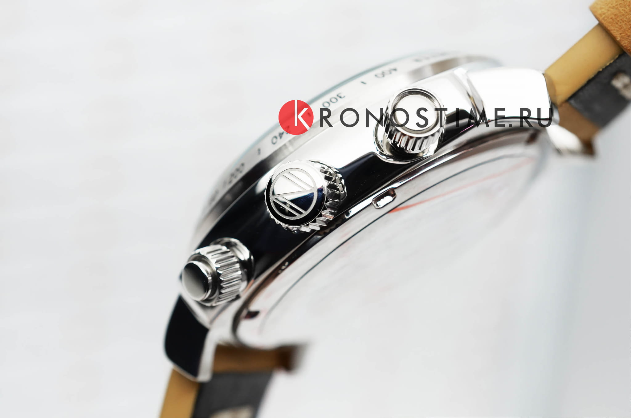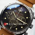 Мужской кварцевый хронографХронографФункция позволяет измерять отрезки времени с особой точностью: часы, минуты, секунды. Верным признаком хронографа является наличие на циферблате 3 дополнительных окошек-счётчиков. с секундомеромСекундомерСекундоме́р — прибор, способный измерять интервалы времени с точностью до долей секунды. и тахиметромТахиметрРазмеченная шкала, располагается на ободке или безеле часов. Тахиметр позволяет рассчитать скорость на определённом участке пути, расстояние измеряется в километрах или милях.. Калибр механизма TMI VK73. Центральные часовая и минутная стрелки, секундная стрелка вынесена на малый циферблат. Большая дата в позиции 12 часов. 12/24х часовой формат времени. Корпус выполнен из нержавеющей стали. Коричневый кожаный ремешок шириной 22 мм, стандартная застежка. Циферблат с люминесцентным покрытиемЛюминесцентное покрытиеПозволяет считывать показания времени в темноте. Производители наносят на стрелки, часовые индексы, безель или поверхность циферблата светонакопительный состав, дающий холодное свечение. стрелок и меток, дополнен выпуклым минеральным стекломМинеральное стеклоМинеральное стекло представляет собой искусственно выращенный минерал кварца. Такое стекло отличается особой устойчивостью к повреждениям и царапинам. Уступает по некоторым качествам сапфировому стеклу. , устойчивым к мелким механическим повреждениям. Водостойкость WR 100 (плавание без погружения).