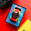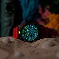 Мужские механические часы с автоподзаводом Spinnaker — это лимитированный и стильный аксессуар. Корпус диаметром 42 мм и толщиной 15 мм выполнен из нержавеющей стали 316L с IP-покрытиемIP-покрытиеМетод ионного напыления. Демонстрирует повышенную устойчивость к истиранию, окислению и химическим веществам. Под воздействием высокого давления и температуры около 1500°C молекулы металла надёжно соединяются с частицами корпуса часов.. Циферблат оформлен штрихами, точками и стрелками. Окошко даты расположено в положении 3 часов. Стрелки и метки с люминесцентным покрытиемЛюминесцентное покрытиеПозволяет считывать показания времени в темноте. Производители наносят на стрелки, часовые индексы, безель или поверхность циферблата светонакопительный состав, дающий холодное свечение., обеспечивающим хорошую читаемость в темноте. На циферблате присутствует скрытый узор, светящийся под УФ-светом. Циферблат защищён сапфировым стекломСапфировое стеклоПрочный и надёжный материал из кристалла сапфира синтетического происхождения, характеризующийся особой твёрдостью и устойчивостью к царапинам и повреждениям. с антибликовым покрытиемАнтибликовое покрытиеСлой оксида металла в 0,13-0,3 микрон, благодаря которому стекло часов не бликует и не отражает свет. Антибликовое покрытие уменьшает отражение света в 10 раз, обеспечивая отличную читаемость показателей циферблата.. Механизм — автоматический калибр Seiko NH35 (24 камня, частота 21 600 полуколебаний в час) с запасом хода более 41 часа. Прозрачная задняя крышка позволяет наблюдать за работой механизма. Часы оснащены красным силиконовым ремешком шириной 22 мм на стандартной пряжке. Водонепроницаемость 200 м позволяет использовать часы для плавания и дайвинга. Идеальный выбор для тех, кто ценит качество и нестандартный дизайн.