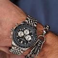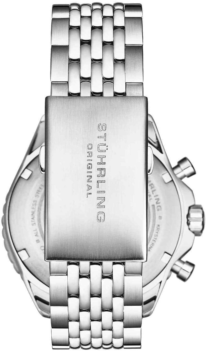 Stuhrling 1010.04 — мощные мужские часы с выразительным спортивным характером и динамичным дизайном. Корпус из нержавеющей стали гармонично сочетается с циферблатом, оформленным рельефным узором и контрастными счётчиками хронографаХронографФункция позволяет измерять отрезки времени с особой точностью: часы, минуты, секунды. Верным признаком хронографа является наличие на циферблате 3 дополнительных окошек-счётчиков.. Широкий безельБезельВнешний ободок, закрепляющий стекло. В спортивных часах так называется поворотное кольцо с делениями на циферблате, выполняет роль таймера – замеряет отрезки времени на шкале. Неподвижный безель – элемент декора. Однонаправленно вращающийся безель на дайверских часах позволяет фиксировать моменты погружения и выныривания на поверхность. с PVD-покрытиемPVDУльтратонкое покрытие наносится в технике вакуумного напыления, сочетает в себе нитрид титана особой прочности со слоем золота или оксида хрома. Несёт в себе декоративную или защитную функцию. подчёркивает брутальный стиль модели, а стрелки и метки с люминесцентным покрытиемЛюминесцентное покрытиеПозволяет считывать показания времени в темноте. Производители наносят на стрелки, часовые индексы, безель или поверхность циферблата светонакопительный состав, дающий холодное свечение. обеспечивают идеальную читаемость в любых условиях. Прочное стекло KrysternaKrysternaKrysterna — инновационное стекло для наручных часов. Благодаря уникальной структуре, Krysterna объединяет ключевые преимущества двух материалов: твердость сапфира, защищающую от царапин, и гибкость минерального стекла, обеспечивающую устойчивость к деформациям. Такая комбинация делает его идеальным решением для часов, подверженных экстремальным нагрузкам, сохраняя при этом оптическую прозрачность. устойчиво к царапинам, сохраняя прозрачность и блеск. Завершает образ стальной браслет с раскладной застёжкойРаскладная застёжкаТакой тип застёжки используется только на браслетах из металла. Она никогда не раскрывается полностью, происходит разделение на 2 и более частей. Раскладывающая застёжка снизит вероятность потери часов к минимуму., гарантирующий комфорт и надёжную фиксацию. Stuhrling — стильная и функциональная модель для уверенных мужчин, ценящих точность и энергию в каждой детали.