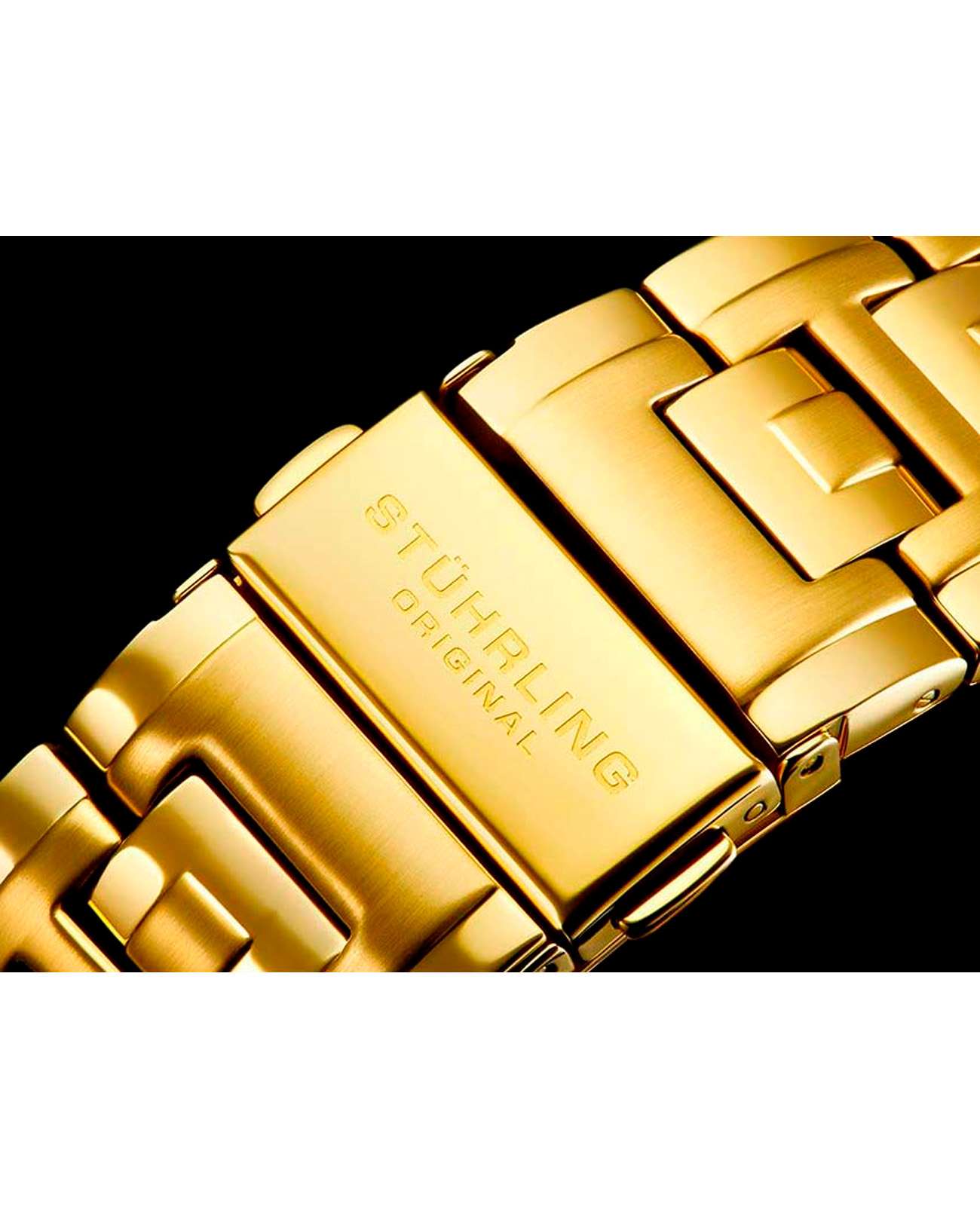 Мужские наручные часы Stührling Original 371B.03 из коллекции Luciano Automatic Skeleton сочетают в себе классический дизайн и современные технологии . Модель оснащена механическим механизмом с автоподзаводом, что гарантирует точность хода без необходимости ручного завода . Корпус часов диаметром 47 мм изготовлен из нержавеющей стали с PVD-покрытиемPVDУльтратонкое покрытие наносится в технике вакуумного напыления, сочетает в себе нитрид титана особой прочности со слоем золота или оксида хрома. Несёт в себе декоративную или защитную функцию. под золото, что подчеркивает элегантность модели . Защиту циферблата обеспечивает прочное стекло KrysternaKrysternaKrysterna — инновационное стекло для наручных часов. Благодаря уникальной структуре, Krysterna объединяет ключевые преимущества двух материалов: твердость сапфира, защищающую от царапин, и гибкость минерального стекла, обеспечивающую устойчивость к деформациям. Такая комбинация делает его идеальным решением для часов, подверженных экстремальным нагрузкам, сохраняя при этом оптическую прозрачность., известное своей устойчивостью к царапинам и механическим повреждениям . Циферблат выполнен в стиле , что позволяет наблюдать за работой внутреннего механизма и демонстрирует сложность инженерного решения . Такой дизайн делает модель не только функциональной, но и стильной, привлекая внимание ценителей сложных технических решений. Браслет из того же материала на раскладной застёжкеРаскладная застёжкаТакой тип застёжки используется только на браслетах из металла. Она никогда не раскрывается полностью, происходит разделение на 2 и более частей. Раскладывающая застёжка снизит вероятность потери часов к минимуму.. Водонепроницаемость модели достигает 5 атмосфер (50 метров), что позволяет использовать их в повседневных условиях, включая контакт с водой, например, при мытье рук или дожде . Заводная головка с системой завинчивания обеспечивает дополнительную защиту механизма от внешних воздействий.