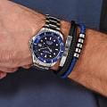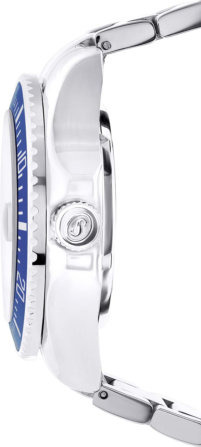 Stuhrling 4048.3 — стильные мужские часы в духе морского дайверского дизайна. Глубокий циферблат с радиальным переливом и крупные метки/стрелки с люминесцентным покрытиемЛюминесцентное покрытиеПозволяет считывать показания времени в темноте. Производители наносят на стрелки, часовые индексы, безель или поверхность циферблата светонакопительный состав, дающий холодное свечение. обеспечивают отличную читаемость, вращающийся безельБезельВнешний ободок, закрепляющий стекло. В спортивных часах так называется поворотное кольцо с делениями на циферблате, выполняет роль таймера – замеряет отрезки времени на шкале. Неподвижный безель – элемент декора. Однонаправленно вращающийся безель на дайверских часах позволяет фиксировать моменты погружения и выныривания на поверхность. с PVD-покрытиемPVDУльтратонкое покрытие наносится в технике вакуумного напыления, сочетает в себе нитрид титана особой прочности со слоем золота или оксида хрома. Несёт в себе декоративную или защитную функцию. подчёркивает спортивный характер. Браслет из нержавеющей стали, удобная раскладная застёжкаРаскладная застёжкаТакой тип застёжки используется только на браслетах из металла. Она никогда не раскрывается полностью, происходит разделение на 2 и более частей. Раскладывающая застёжка снизит вероятность потери часов к минимуму. фиксирует часы на запястье. Циферблат прикрыт стеклом KrysternaKrysternaKrysterna — инновационное стекло для наручных часов. Благодаря уникальной структуре, Krysterna объединяет ключевые преимущества двух материалов: твердость сапфира, защищающую от царапин, и гибкость минерального стекла, обеспечивающую устойчивость к деформациям. Такая комбинация делает его идеальным решением для часов, подверженных экстремальным нагрузкам, сохраняя при этом оптическую прозрачность. с высокой стойкостью к царапинам. Надёжный спутник для повседневной настроения и активного отдыха.