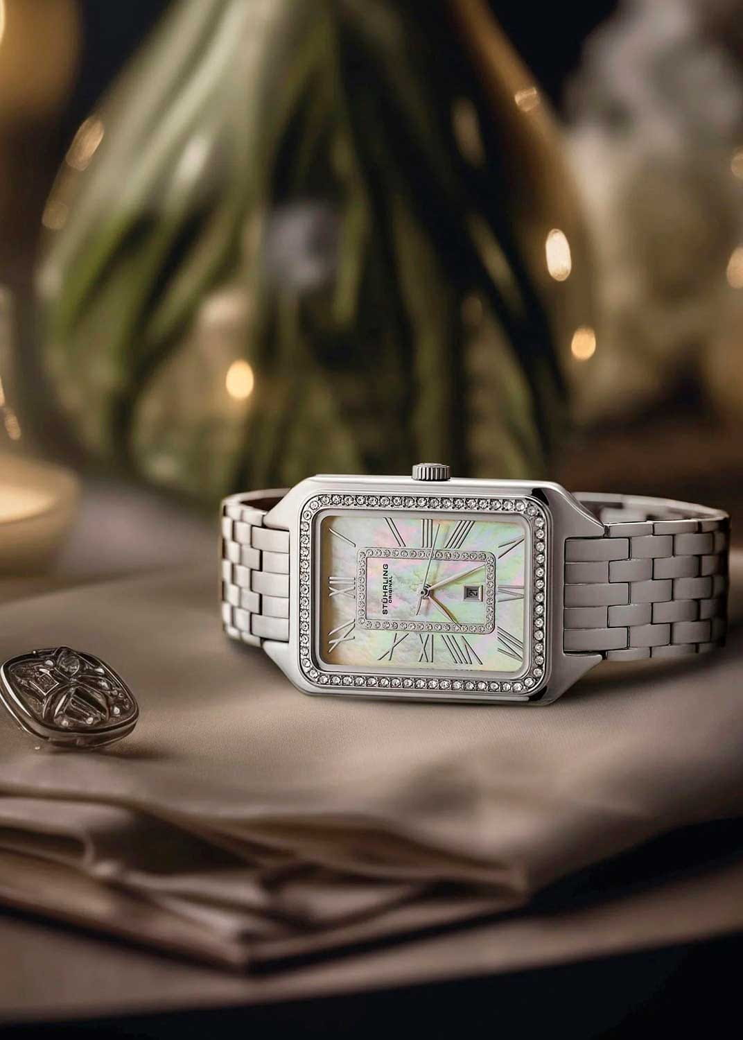 Stuhrling 4061.1 — изысканные женские часы, созданные в духе утончённой элегантности и современного гламура. Прямоугольный корпус с инкрустацией по периметру сияет на свету, подчёркивая благородство глубокого циферблата с утончёнными римскими цифрами и изящными стрелками. Центральная декоративная рамка придаёт модели архитектурную глубину и изысканный блеск. Корпус и браслет выполнены из нержавеющей стали, обеспечивая прочность и долговечность, а надёжная раскладная застёжкаРаскладная застёжкаТакой тип застёжки используется только на браслетах из металла. Она никогда не раскрывается полностью, происходит разделение на 2 и более частей. Раскладывающая застёжка снизит вероятность потери часов к минимуму. гарантирует комфортное и безопасное ношение. Циферблат защищён фирменным стеклом Krysterna, устойчивым к ударам и царапинам. Stuhrling — это гармония блеска, стиля и надёжности, идеально подходящая для женщины, ценящей классическую форму и современное сияние.