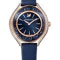 Swarovski 5519447 — элегантные женские часы из коллекции Crystalline Aura, сочетающие изысканный дизайн с высоким качеством. Корпус диаметром 35,5 мм выполнен из нержавеющей стали с розовым PVD-покрытиемPVDУльтратонкое покрытие наносится в технике вакуумного напыления, сочетает в себе нитрид титана особой прочности со слоем золота или оксида хрома. Несёт в себе декоративную или защитную функцию., что обеспечивает долговечность и элегантный вид. Минеральное стеклоМинеральное стеклоМинеральное стекло представляет собой искусственно выращенный минерал кварца. Такое стекло отличается особой устойчивостью к повреждениям и царапинам. Уступает по некоторым качествам сапфировому стеклу. защищает циферблат от царапин. Корпус украшен более чем 1300 кристаллами Swarovski, создающими роскошный блеск. Синий циферблат с изящными золотистыми метками и стрелками подчёркивает утончённость дизайна. Логотип Swarovski в виде лебедя расположен на отметке «12 часов». Часы оснащены швейцарским кварцевым механизмом, обеспечивающим точный ход. Ремешок из итальянской телячьей кожи синего цвета гарантирует комфортное ношение. Классическая застёжка обеспечивает надёжную фиксацию. Водозащита до 5 ATM (50 метров) делает часы подходящими для повседневного использования. Swarovski 5519447 — это идеальный выбор для женщин, ценящих утончённый стиль, функциональность и комфорт.