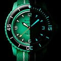 Швейцарские наручные часы сочетают в себе современный дизайн и инновационные технологии. Модель обладает круглым корпусом диаметром 42,3 мм, изготовленным из биокерамикиБиокерамикаБиокерамика — это материал, который на две трети состоит из керамики, на одну треть — из биопластика. Он сочетает в себе лучшие качества обоих материалов и обладает прочностью и шелковистой на ощупь текстурой., что обеспечивает высокую прочность и устойчивость к внешним воздействиям . Толщина корпуса составляет 14,4 мм, а расстояние между ушками — 48,0 мм, что делает часы удобными для повседневного использования . Ремешок выполнен из ткани в стиле ремешка NATOРемешок NATOРемешок NATO — это прочный, универсальный и сменный часовой ремешок, изначально созданный для военных. Он изготовлен из нейлона или другого прочного материала и имеет уникальную конструкцию, которая позволяет часам оставаться на запястье даже в случае поломки одной из прикрепляющих точек. , гарантируя комфортное ношение и долговечность . Зеленый циферблат дополнен люминесцентными метками и арабскими цифрами, что обеспечивает четкость считывания времени в любых условиях . Для защиты используется органическое стекло, обеспечивающее надежную защиту от царапин и механических повреждений . Часы работают на автоматическом механизме Sistem51, что гарантирует точность хода без необходимости регулярной подзаводки . Водонепроницаемость часов достигает 100 метров, что позволяет использовать их в повседневных условиях, однако не рекомендуется погружение на большую глубину . Дополнительные элементы дизайна, такие как заводная головка и кнопки-пушеры, выполненные из биокерамикиБиокерамикаБиокерамика — это материал, который на две трети состоит из керамики, на одну треть — из биопластика. Он сочетает в себе лучшие качества обоих материалов и обладает прочностью и шелковистой на ощупь текстурой., завершают образ этих стильных и функциональных часов.