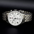 Часы-хронографХронографФункция позволяет измерять отрезки времени с особой точностью: часы, минуты, секунды. Верным признаком хронографа является наличие на циферблате 3 дополнительных окошек-счётчиков. с секундомеромСекундомерСекундоме́р — прибор, способный измерять интервалы времени с точностью до долей секунды.. Кварцевый механизм с высокой точностью. минеральное стеклоМинеральное стеклоМинеральное стекло представляет собой искусственно выращенный минерал кварца. Такое стекло отличается особой устойчивостью к повреждениям и царапинам. Уступает по некоторым качествам сапфировому стеклу. устойчивое к появлению царапин, обладающее высокой прозрачностью. Стрелки и метки с люминесцентным покрытиемЛюминесцентное покрытиеПозволяет считывать показания времени в темноте. Производители наносят на стрелки, часовые индексы, безель или поверхность циферблата светонакопительный состав, дающий холодное свечение.. Класс водозащиты: 100 метров, позволит плавать, нырять и заниматься другими водными видами спорта. Корпус часов изготовлен из нержавеющей стали. Браслет с раскладной застёжкойРаскладная застёжкаТакой тип застёжки используется только на браслетах из металла. Она никогда не раскрывается полностью, происходит разделение на 2 и более частей. Раскладывающая застёжка снизит вероятность потери часов к минимуму..